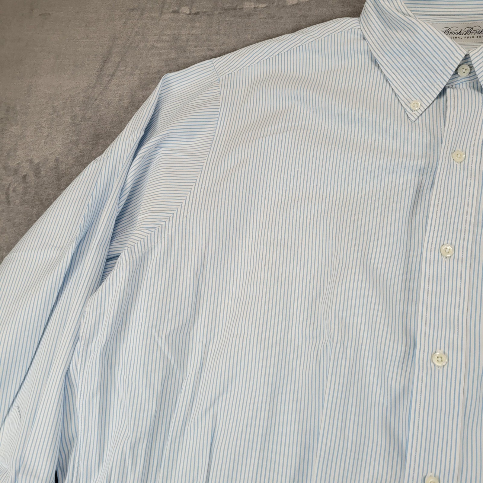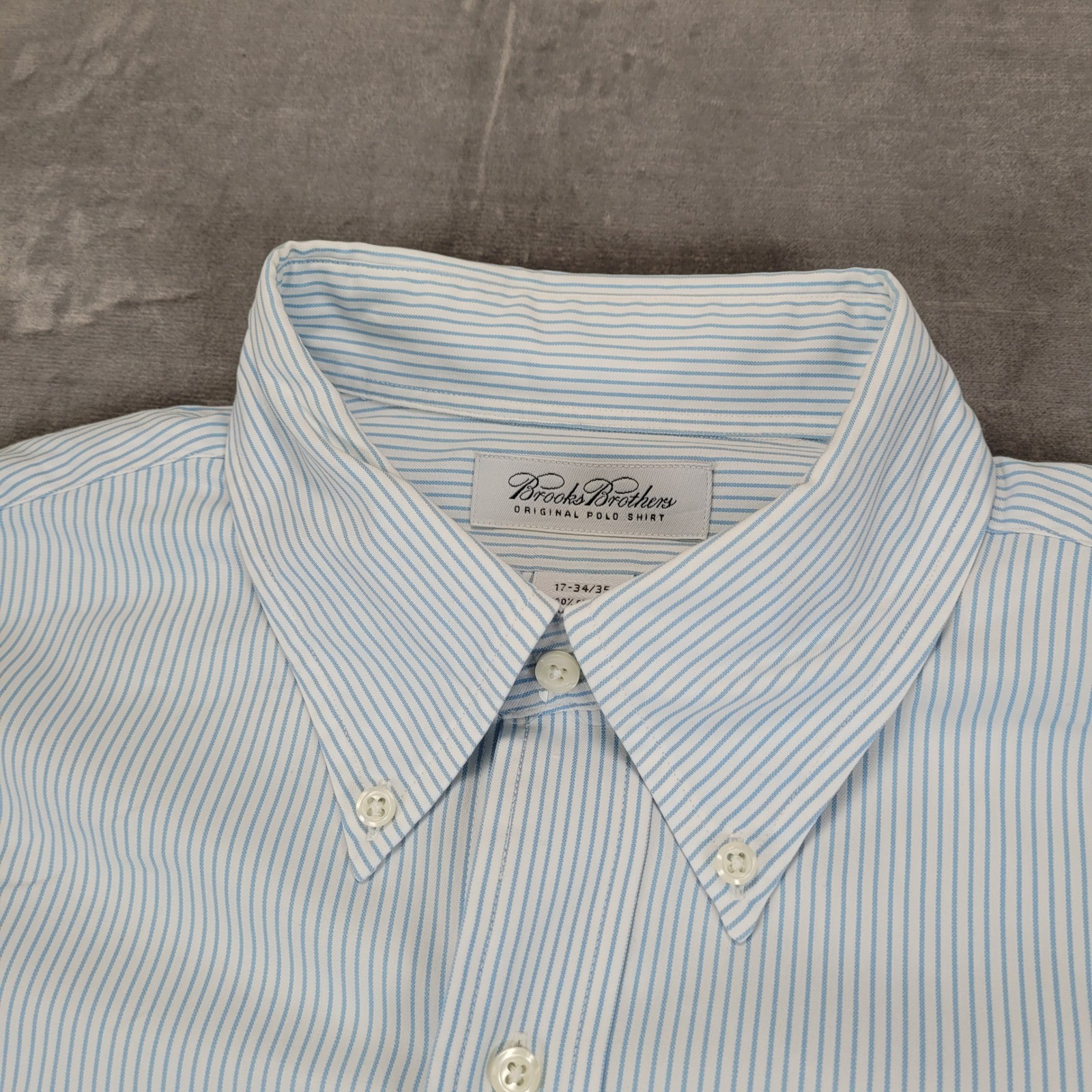 как выглядит Brooks Brothers Mens Light Blue Stripe 17 34/35 Cotton Button Down Shirt Preppy фото
