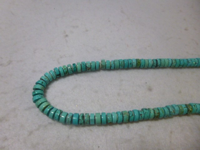 как выглядит Turquoise Heishi Bead Sterling Silver Native American Southwestern Necklace фото