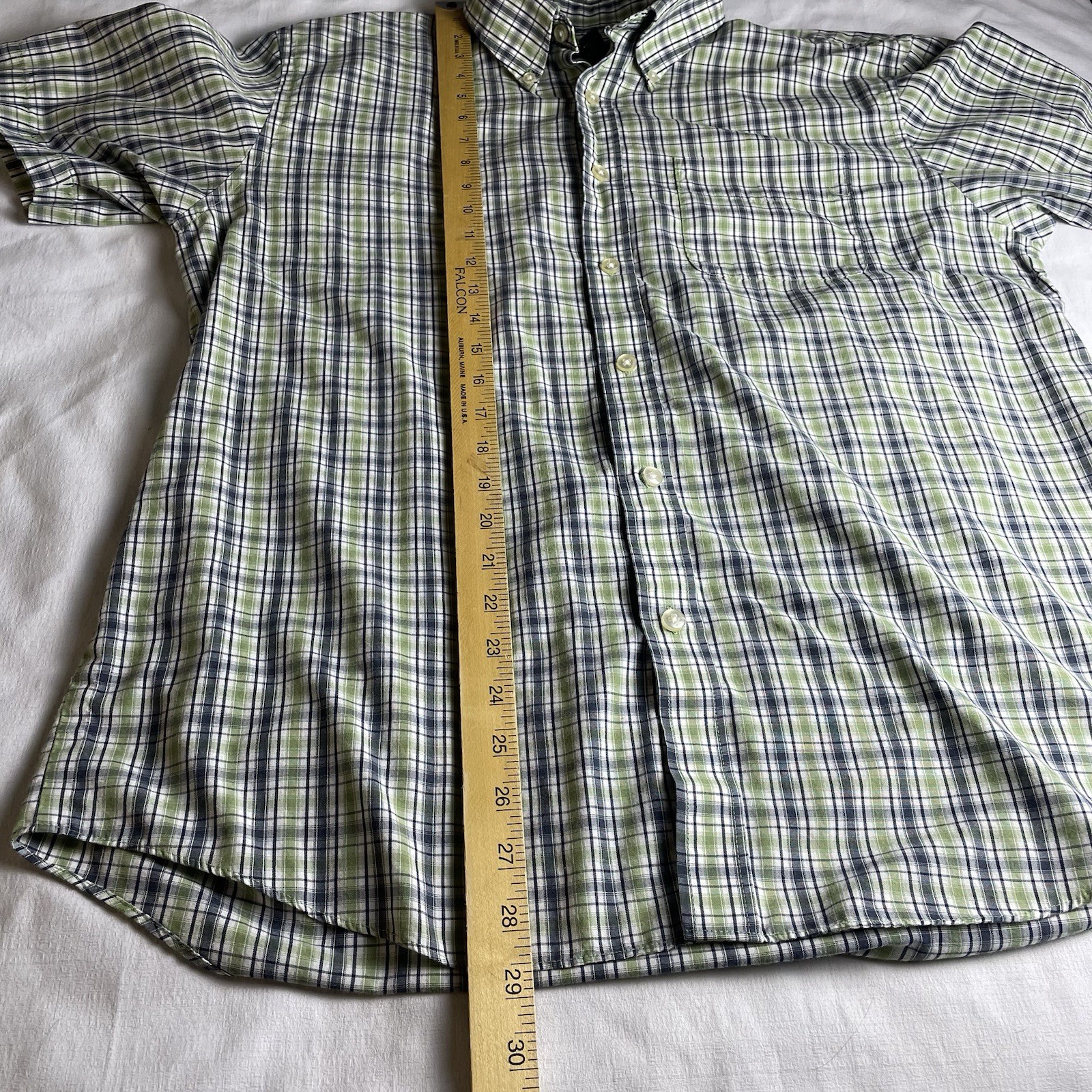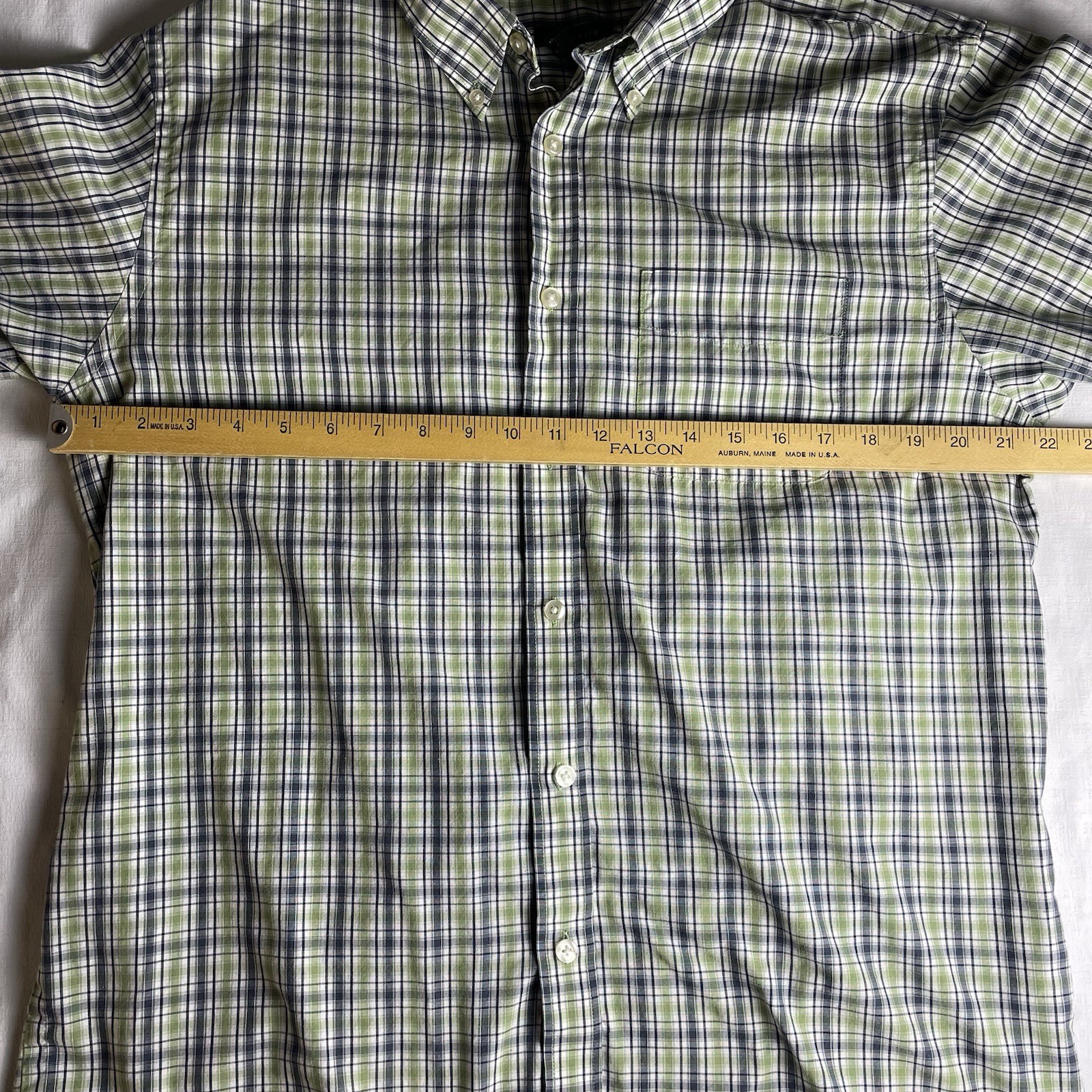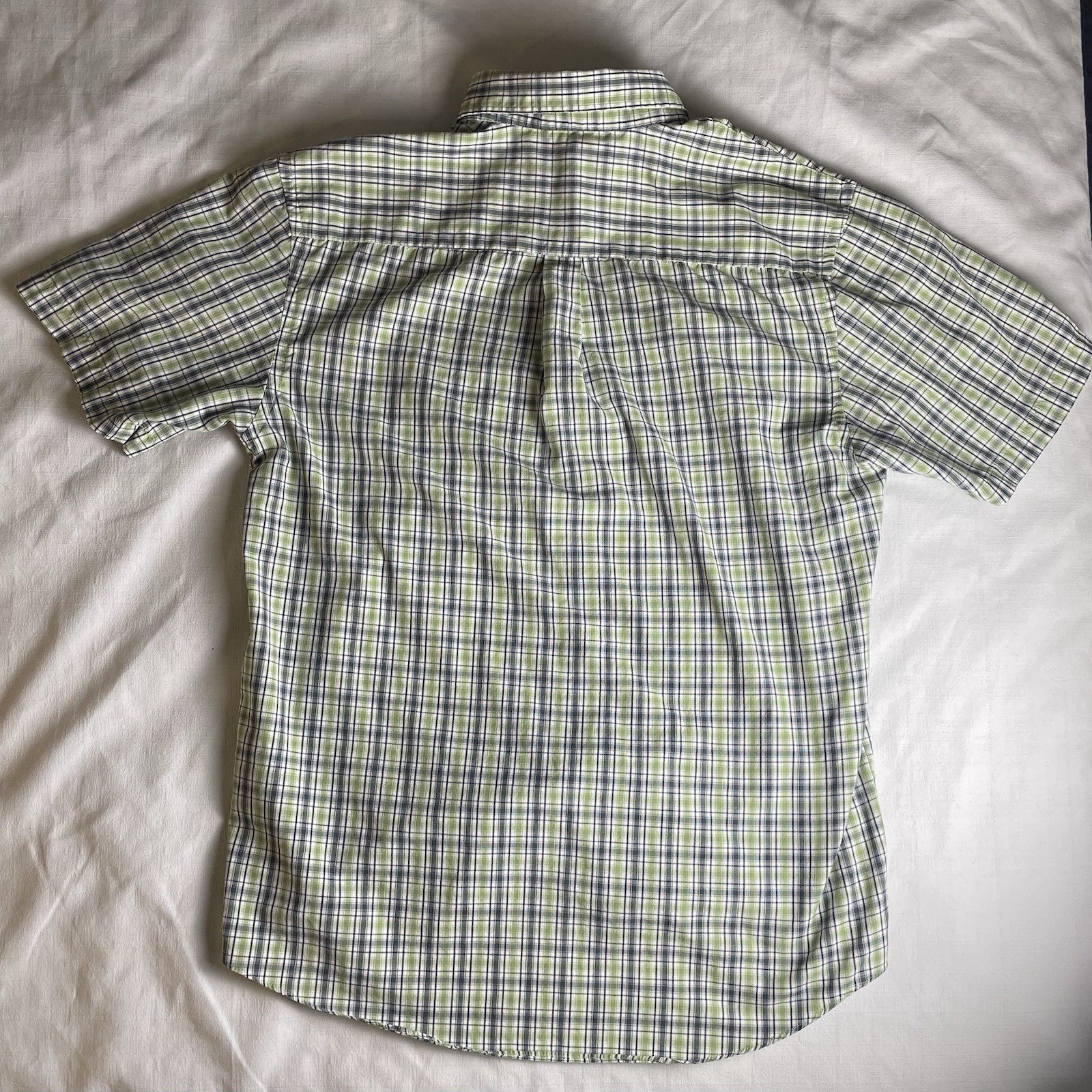 Van Heusen Mens M 15-15.5 Short Sleeve Button Up Shirt Green Blue Plaid Casual