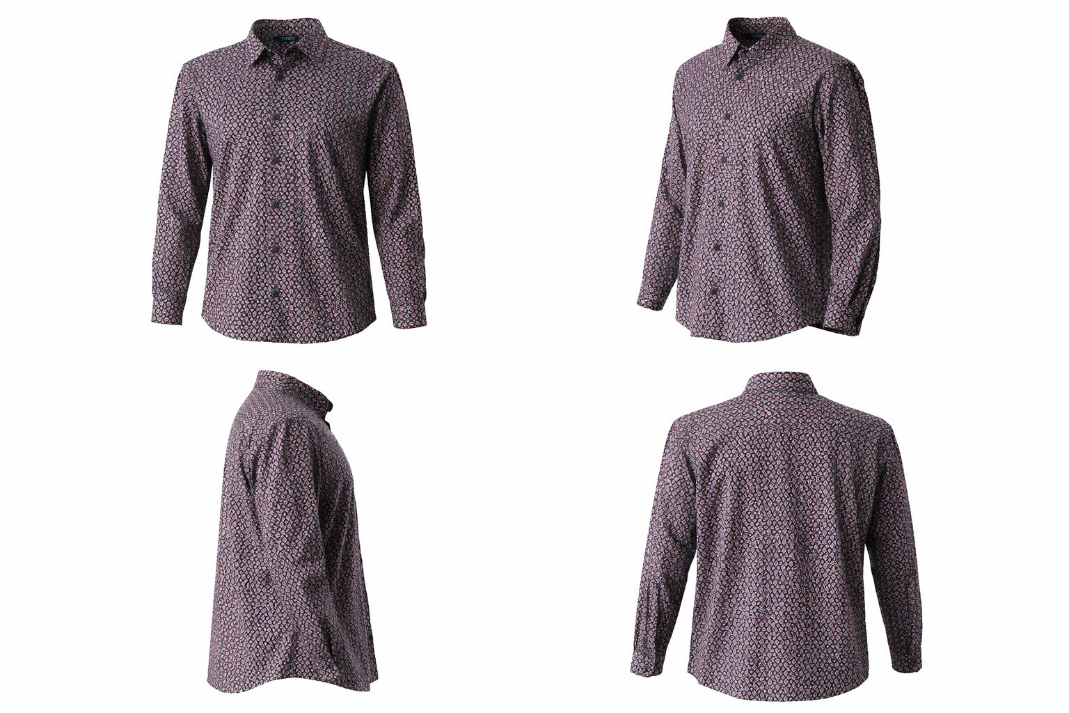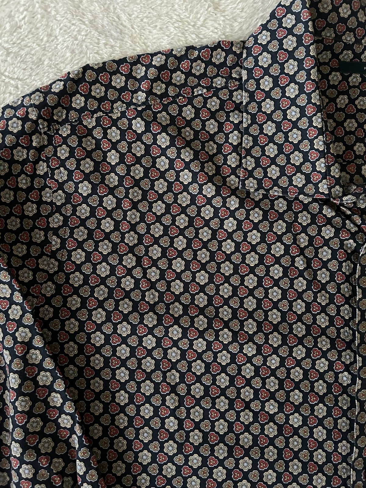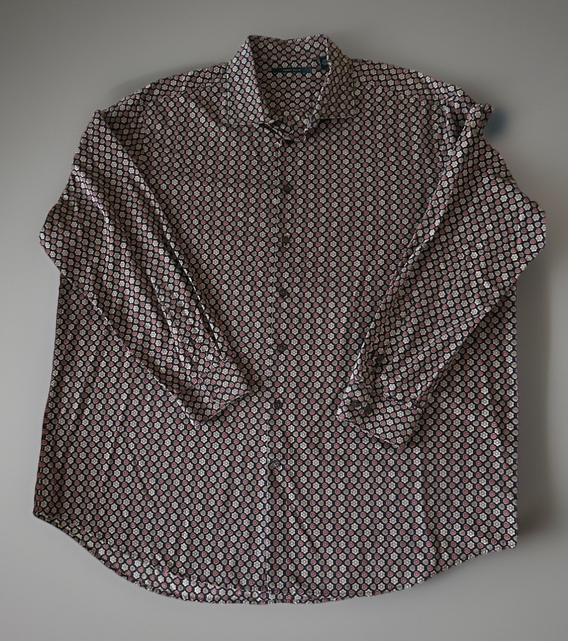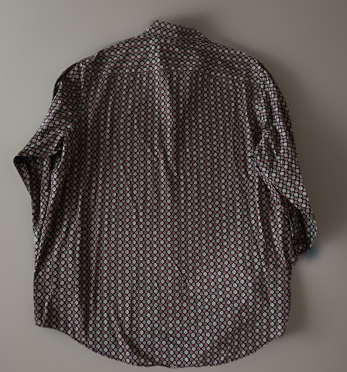 как выглядит Perry Ellis Floral Red Gold 2XLT 100 Cotton Button Up Long Sleeve фото