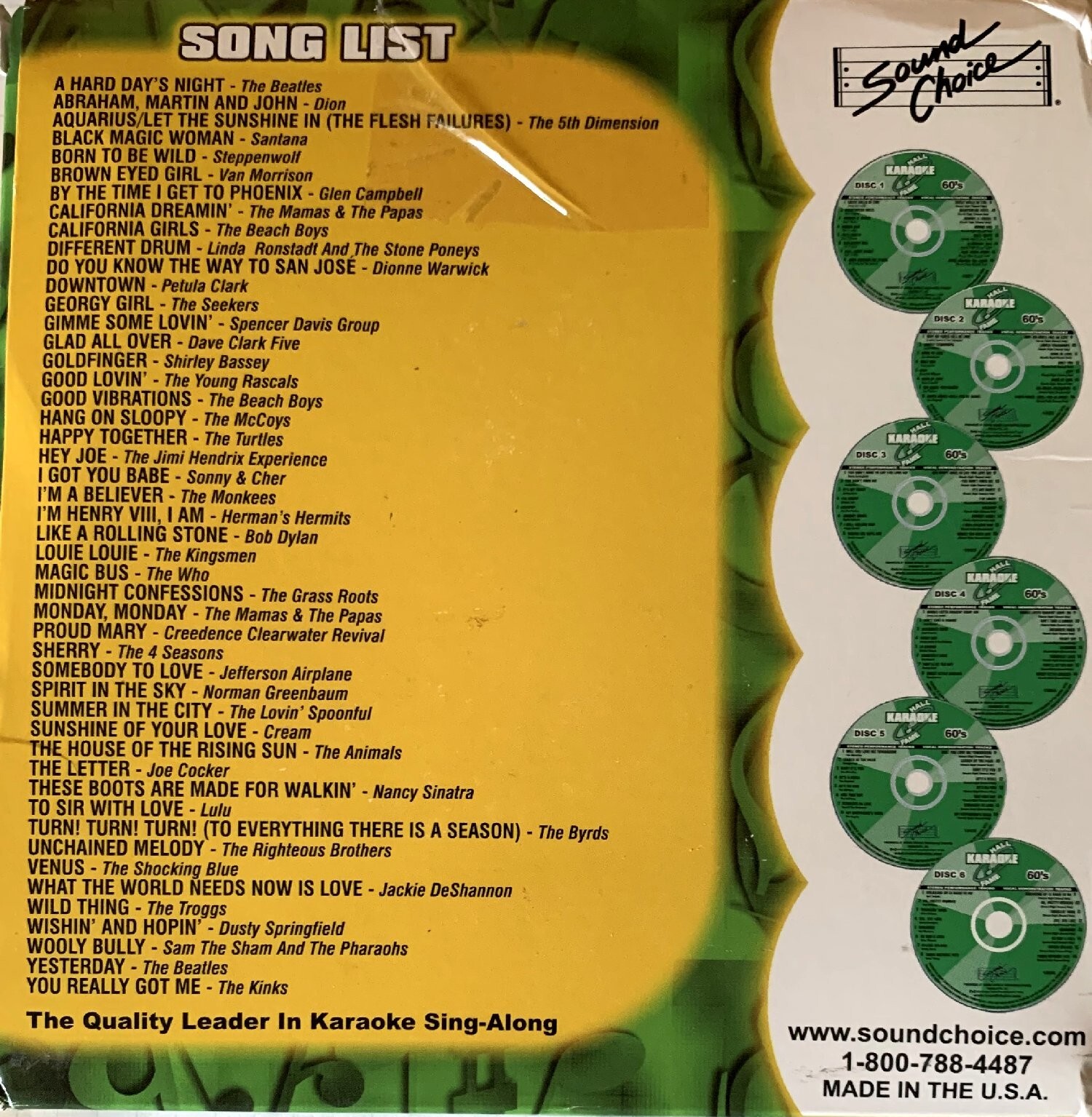SOUND CHOICE KARAOKE - 60'S HALL OF FAME - 6 DISC SET - MOST REQUESTED SONGS