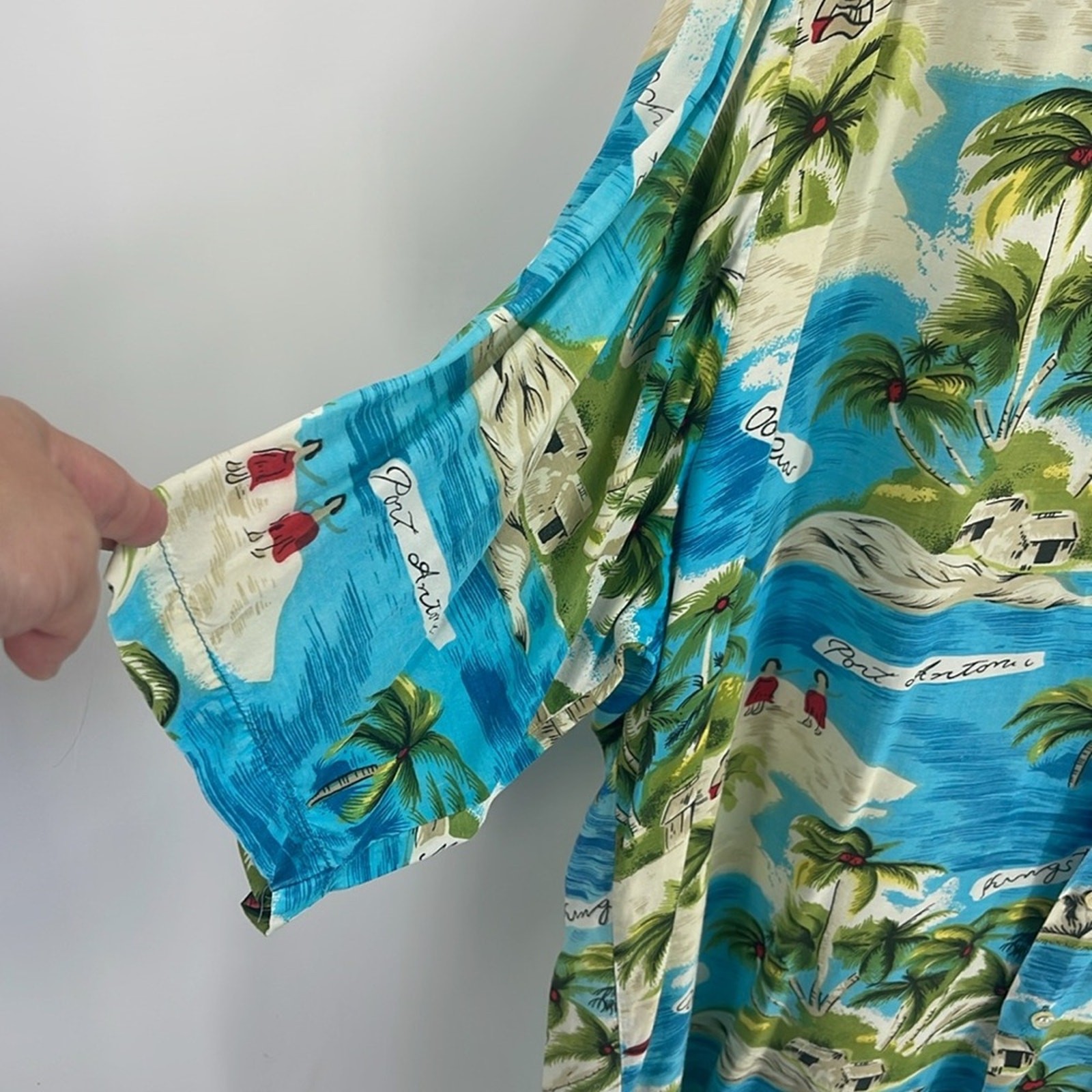 как выглядит Vintage 1960s Hawaiian tropical Jamaica print short sleeve button up shirt sz L фото