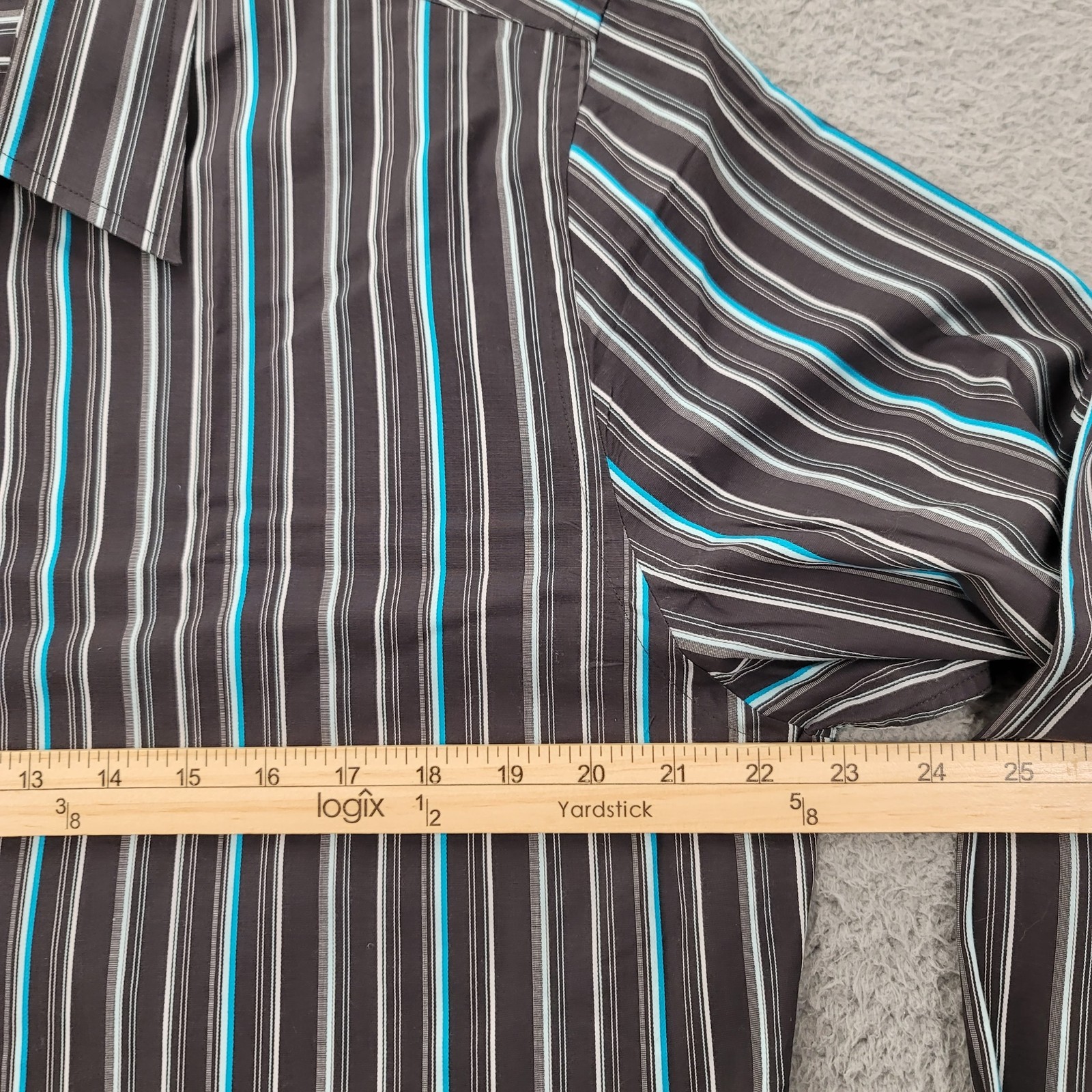 как выглядит Express Shirt Mens Large 16-16 1/2 Brown Striped Fitted Stretch Button Up фото