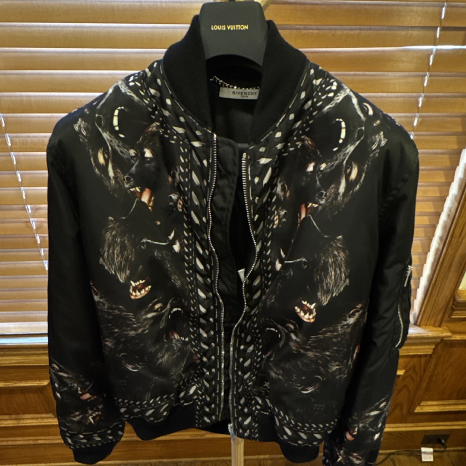 Givenchy Men's Black Animal Print Graphic Bomber Jacket Zip Ribbed Size 50