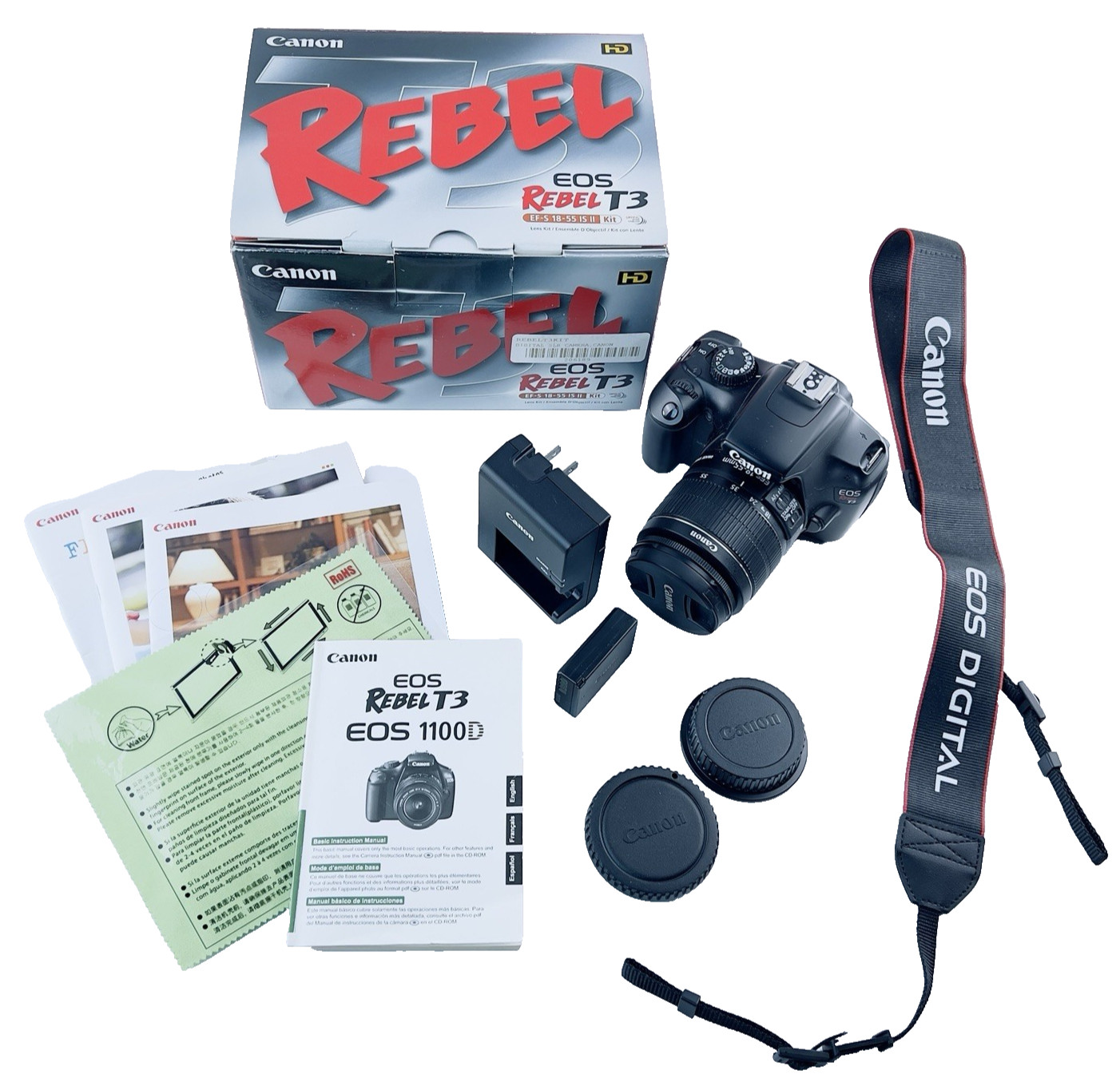 Canon EOS Rebel T3 Digital SLR Camera EF-S 18-55 IS II, All Accessories, Disks