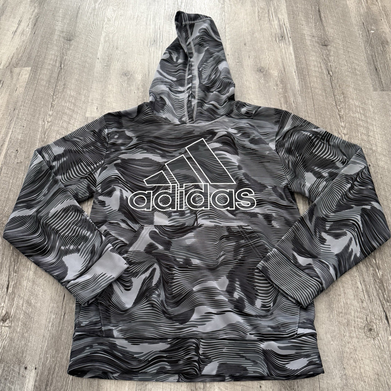 Adidas Hoodie Boys Large 14/16 Warp Camo All Over Print Sweatshirt Pullover