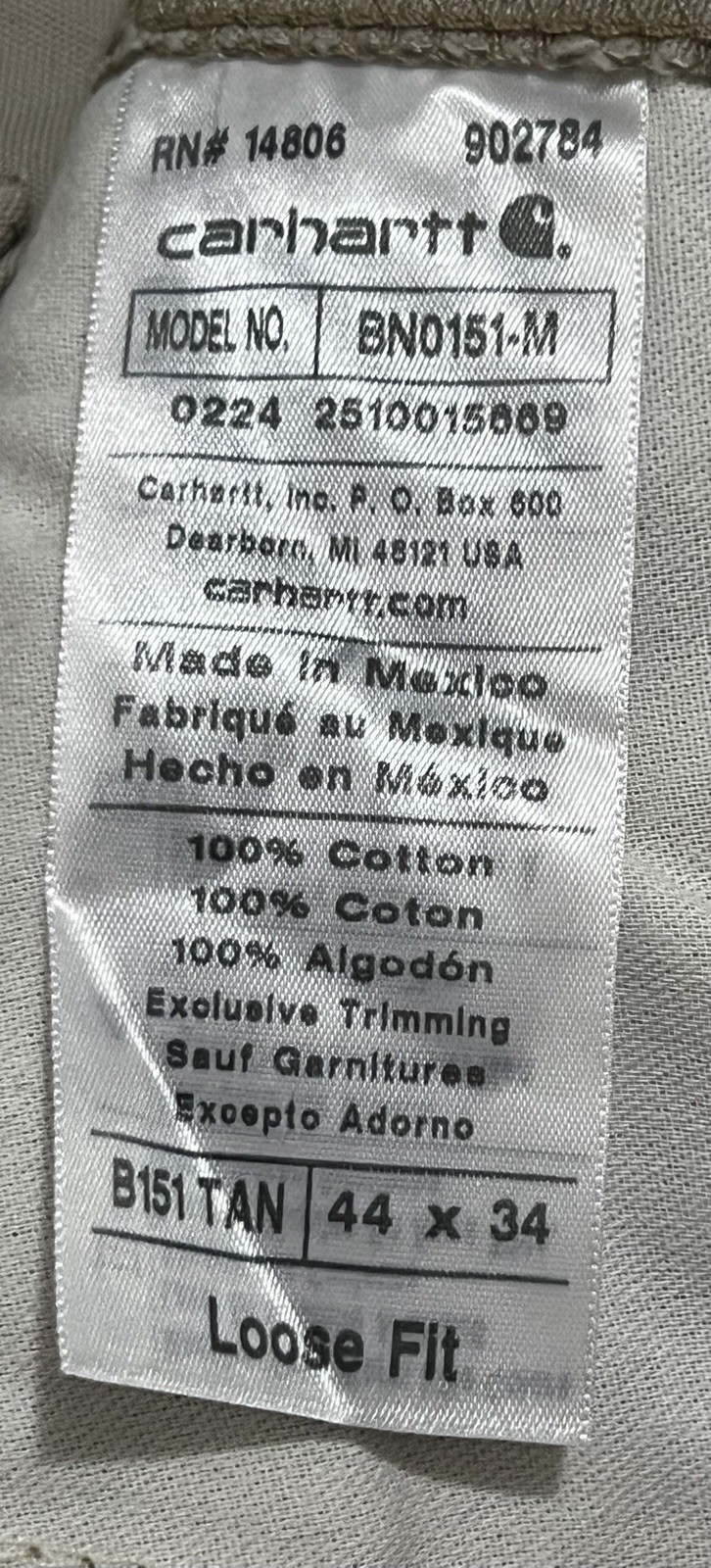 Carhartt BN0151-M 44x34 Men s Loose Fit Canvas Utility Work Pants Tan NWT