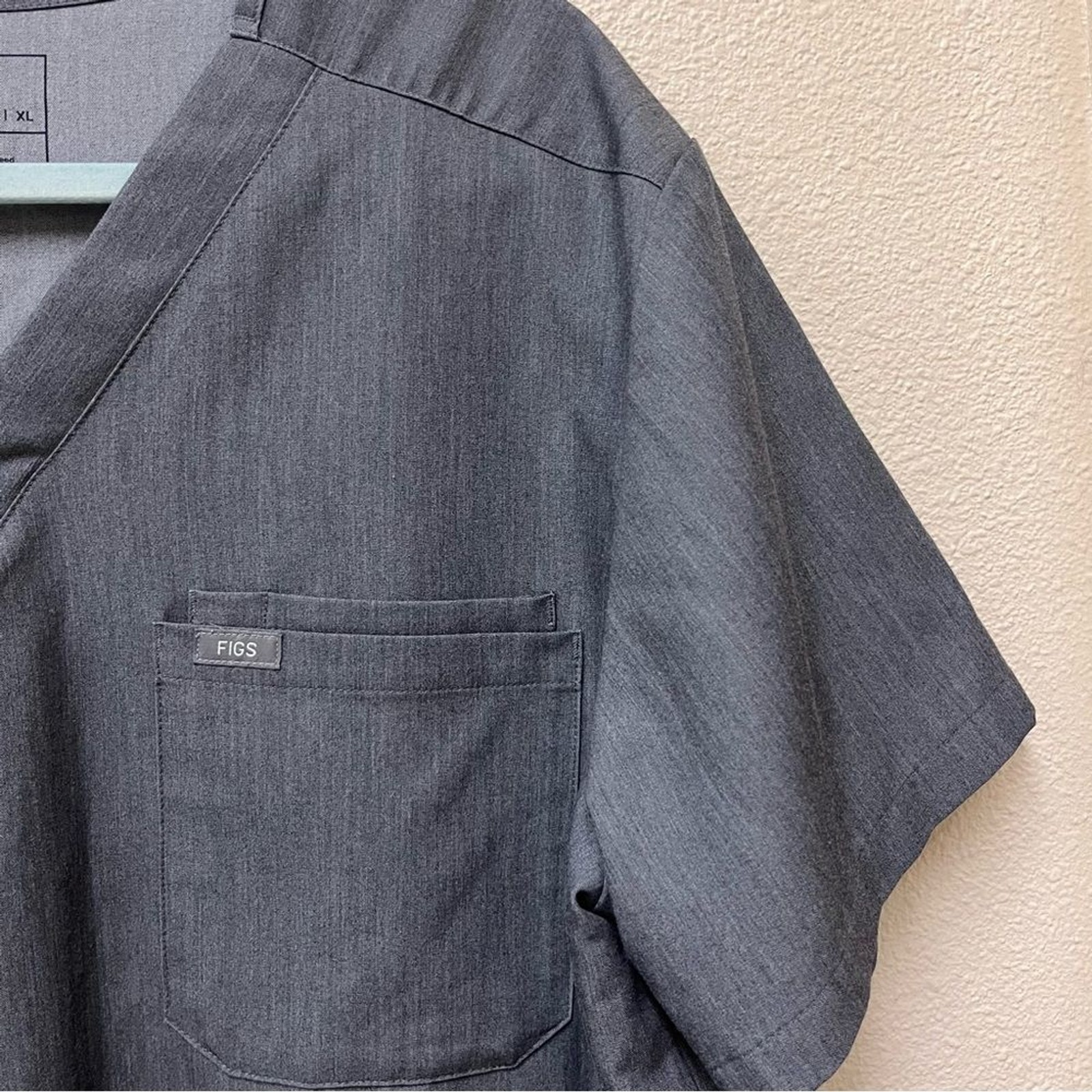 как выглядит Figs Mens Gray Technical Collection V-Neck Scrub Top Short Sleeve XL фото