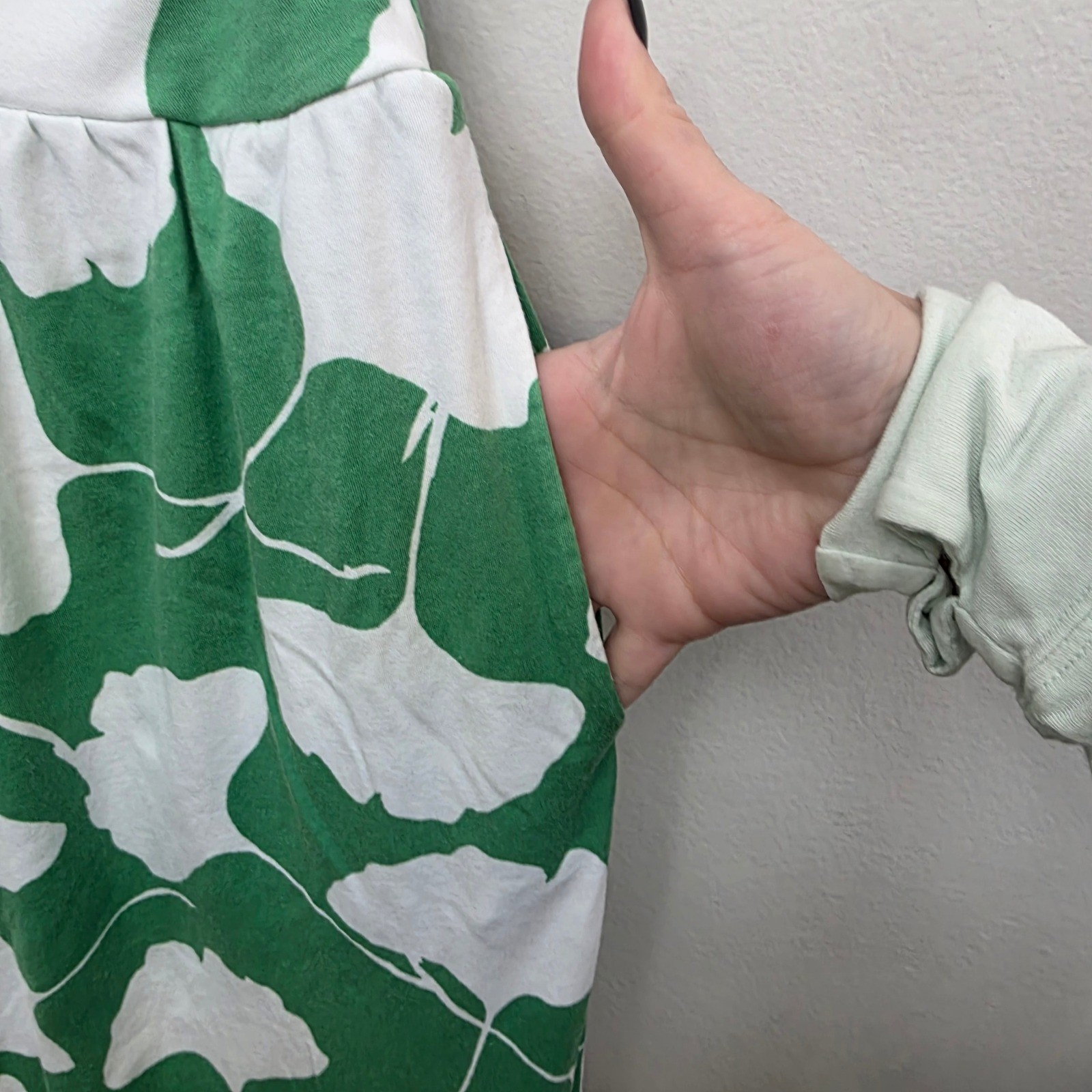 как выглядит Diane von Furstenberg Green White Ginkgo Leaf Halter Wide Leg Jumpsuit Large фото