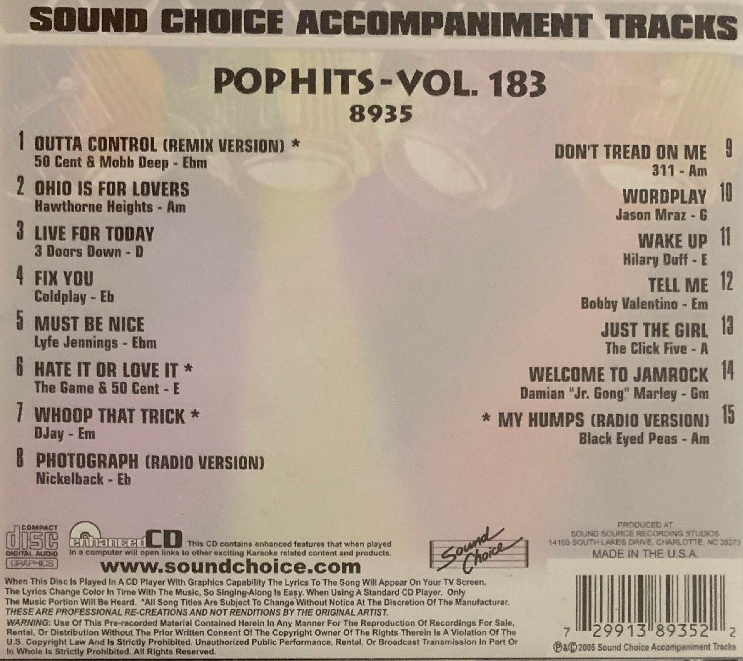 SOUND CHOICE SPOTLIGHT - POP HITS - SC8935 - V183 - BLACK EYED PEAS MORE
