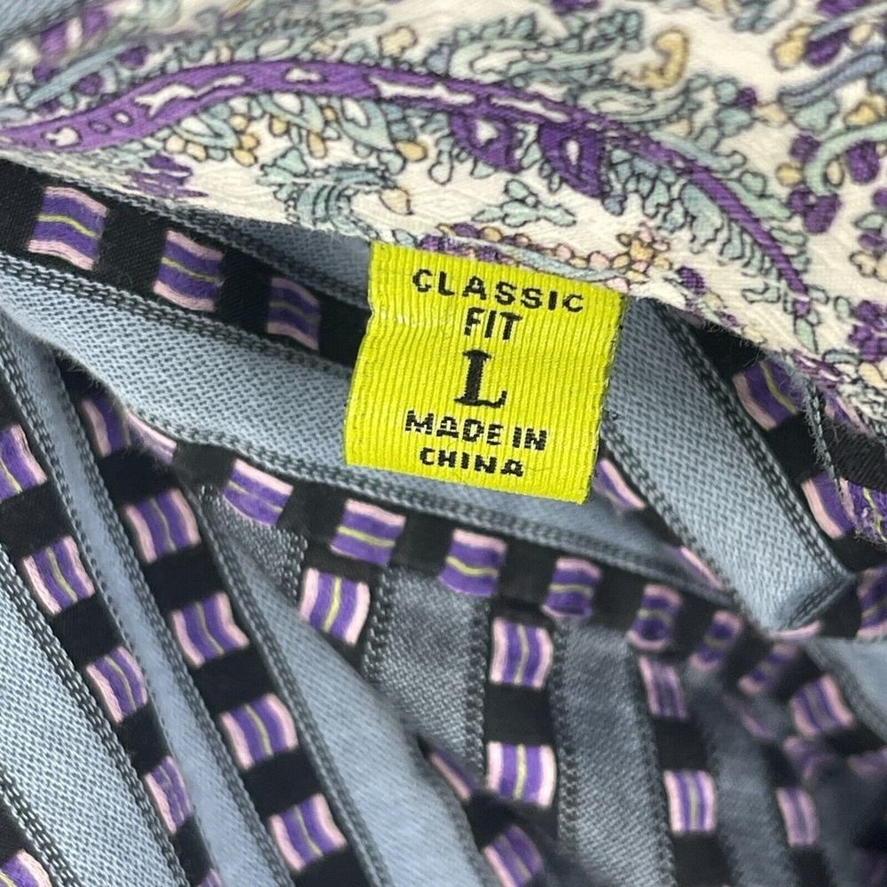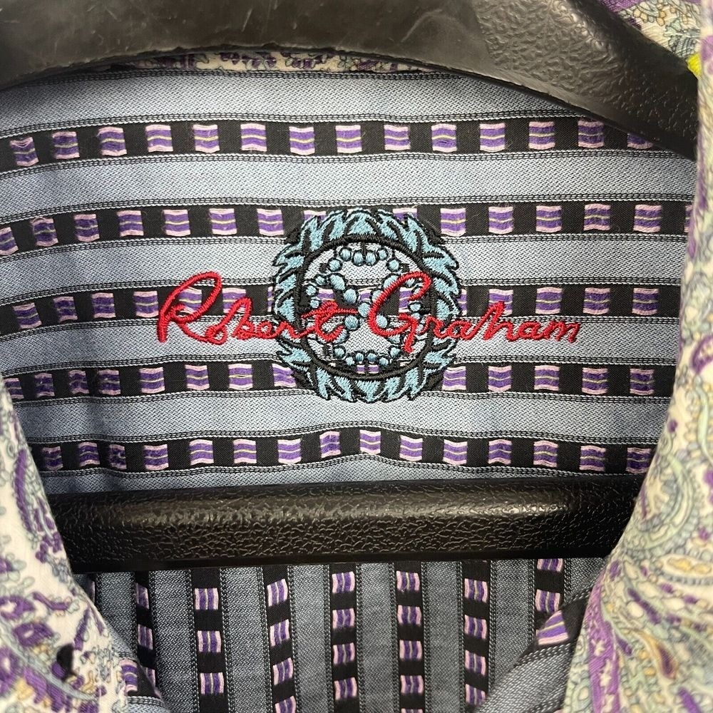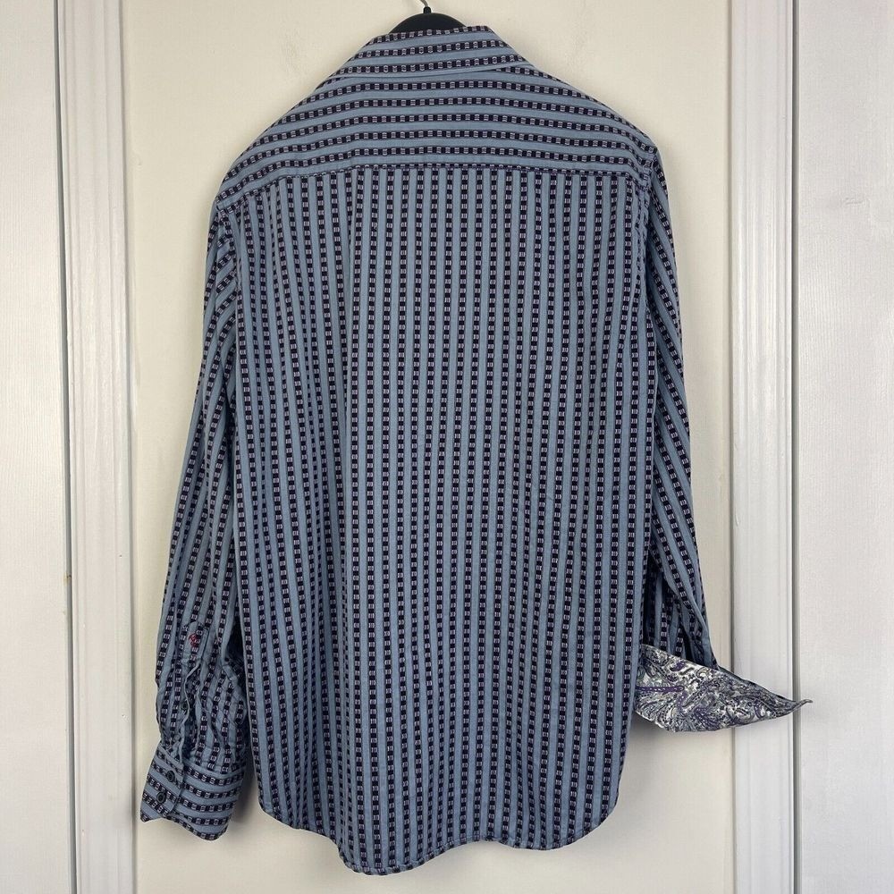 как выглядит Robert Graham Mens L Classic Fit Blue Purple Striped Button Down Shirt Flip Cuff фото