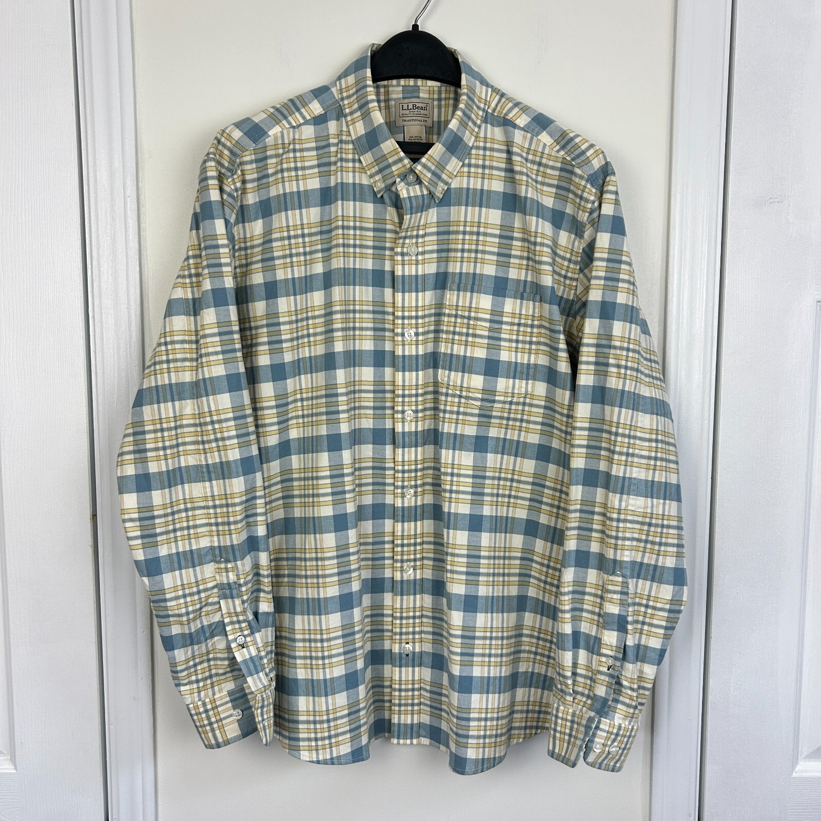 как выглядит LL Bean Mens L Heavy Cotton Twill Blend Stretch Button Down Plaid Blue Easter фото