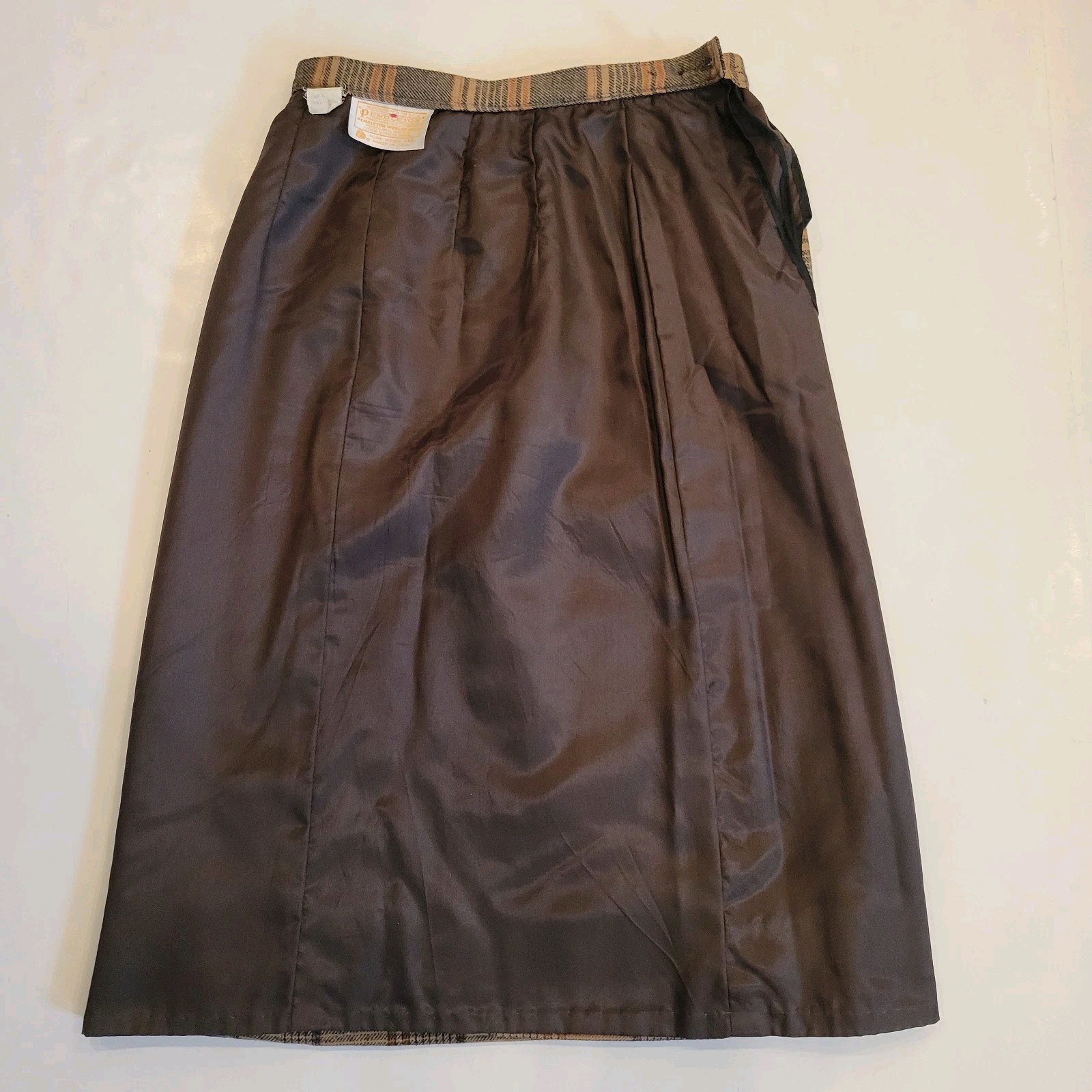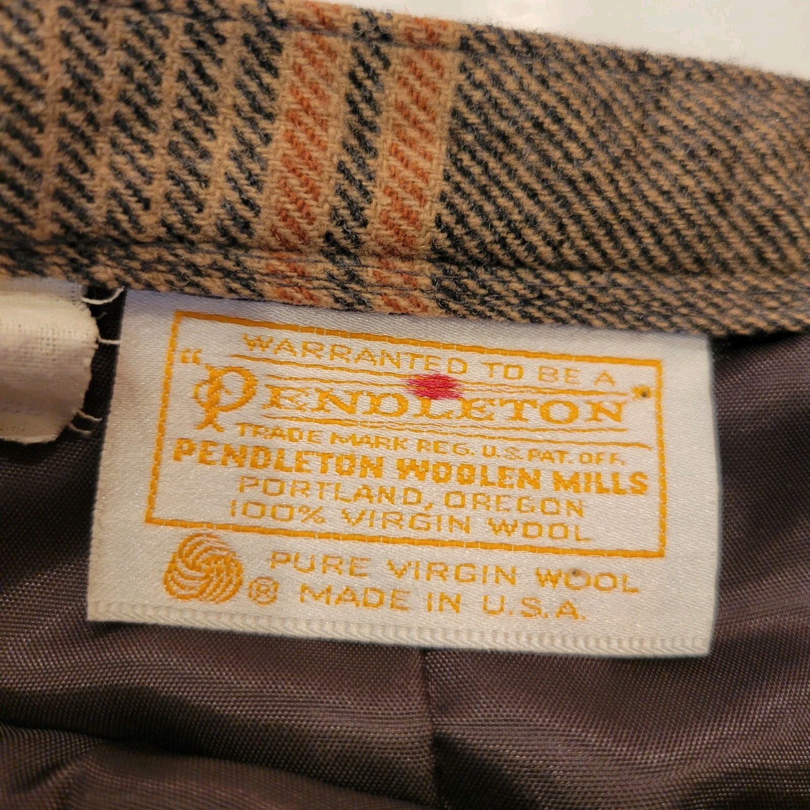 как выглядит Vintage Pendleton 100 Virgin Wool Lined Skirt Brown Beige Plaid Preppy 70s фото