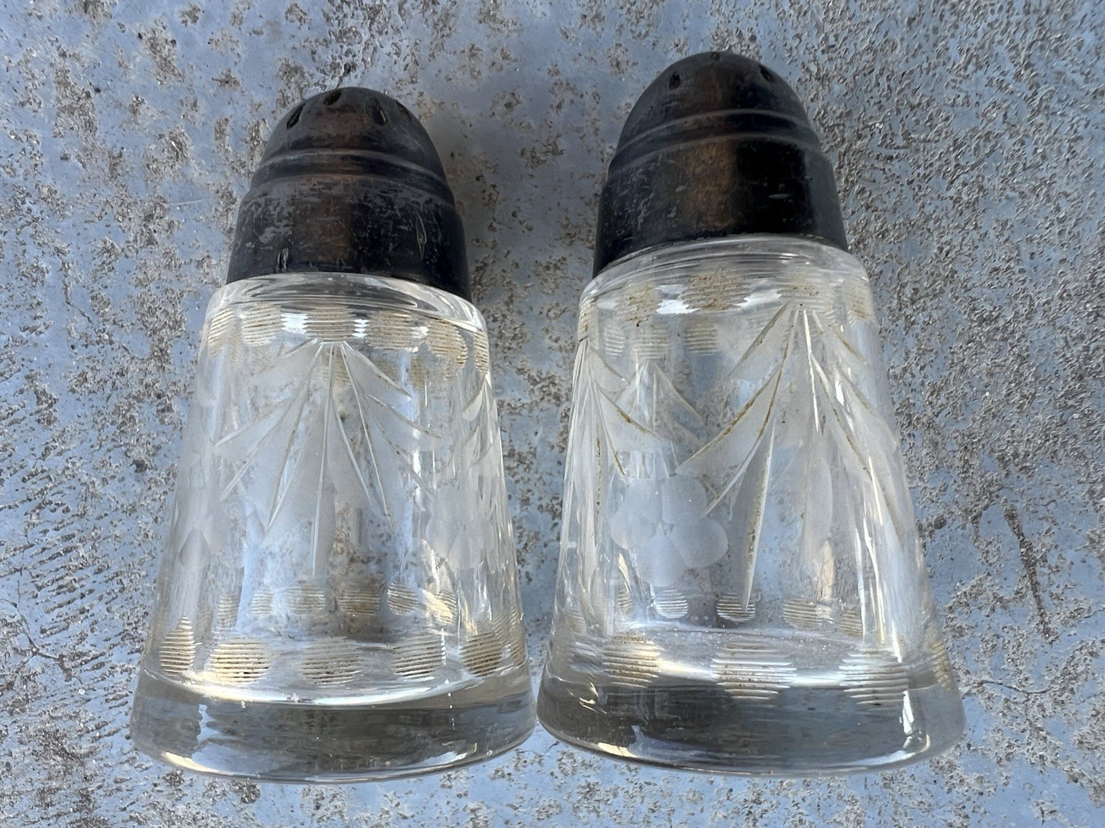 Salt N Pepper Shakers Etched Glass Beautiful