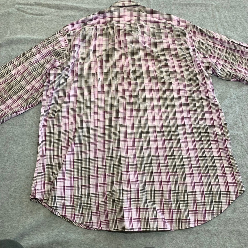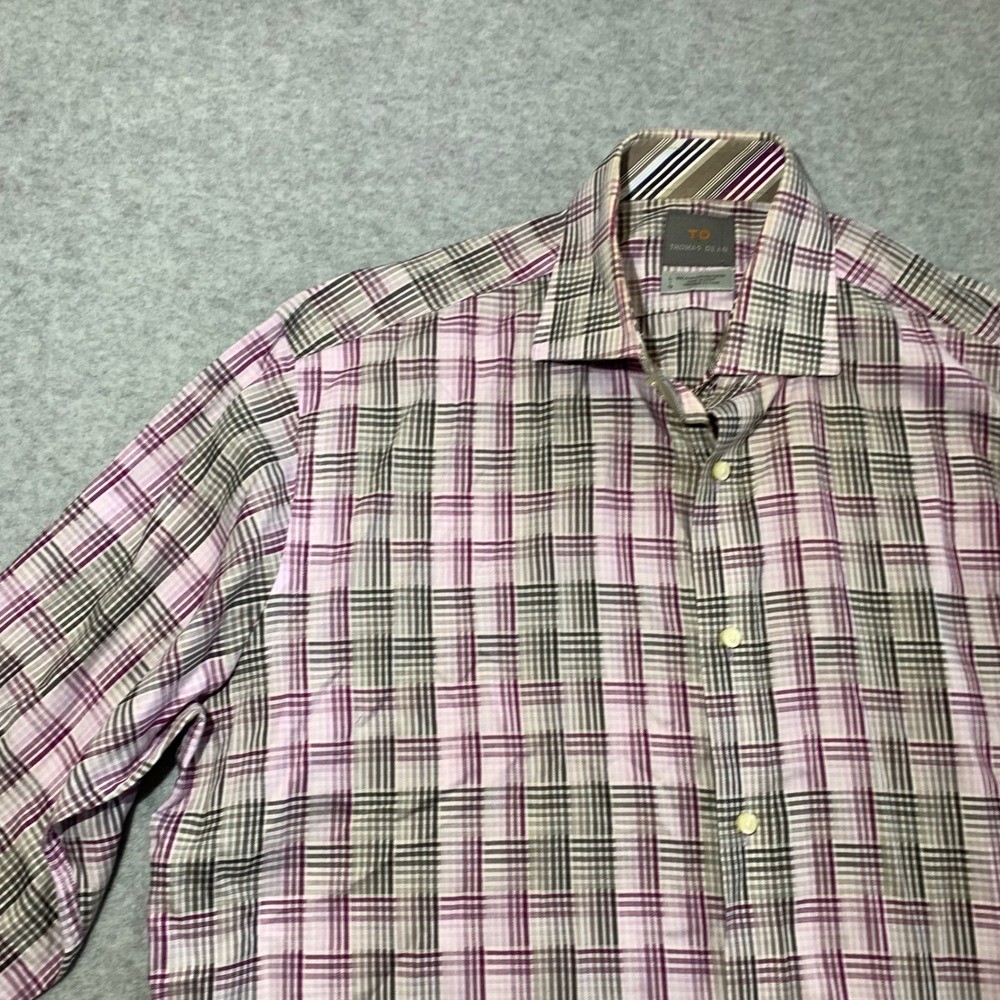 как выглядит Thomas Dean Button Down Mens Large Purple Plaid Pima Cotton Long Sleeve Shirt фото