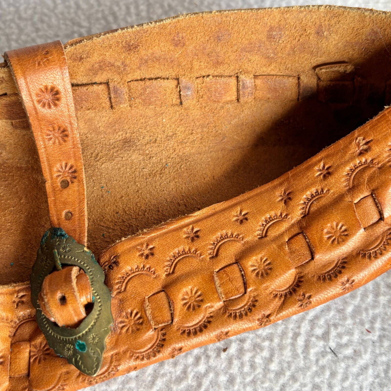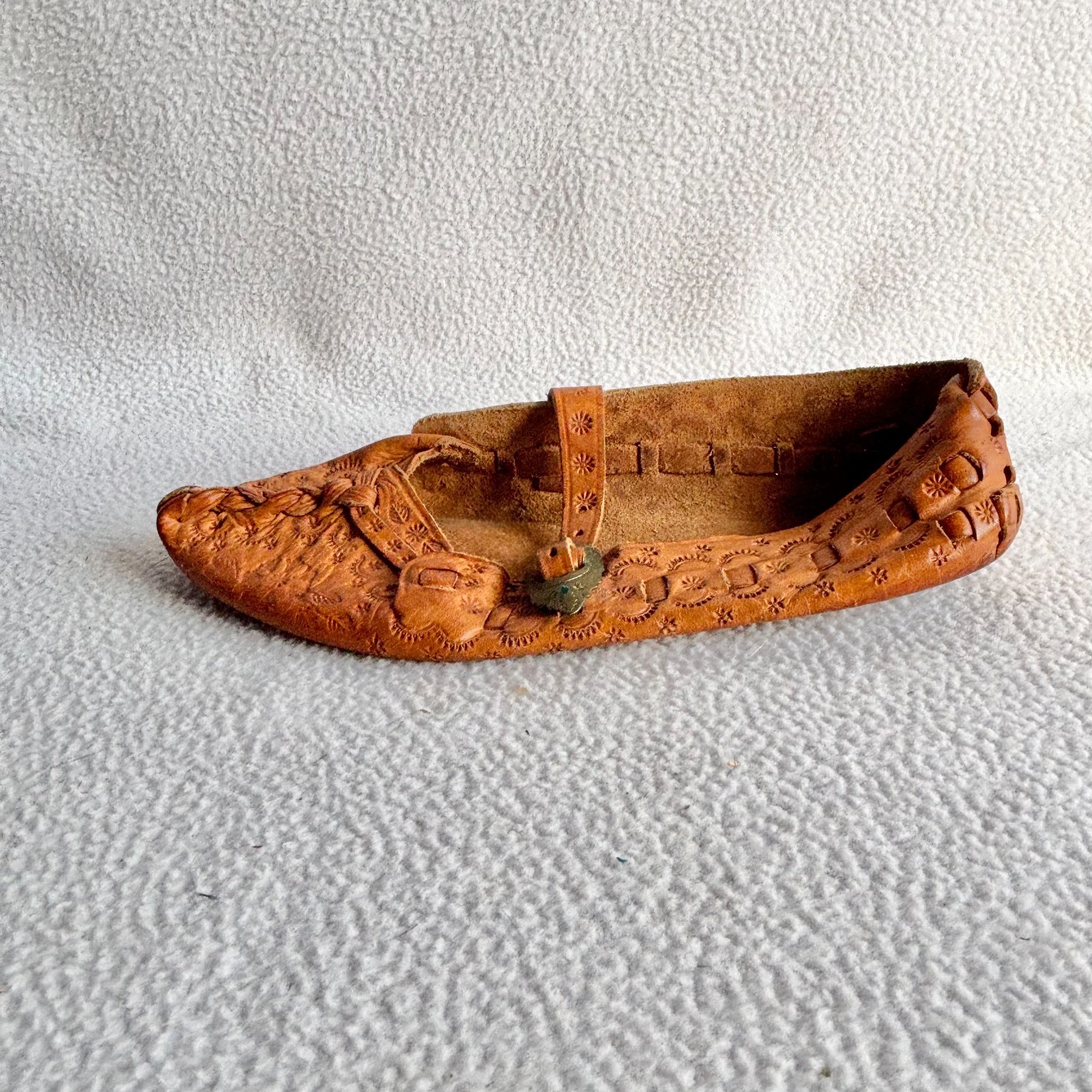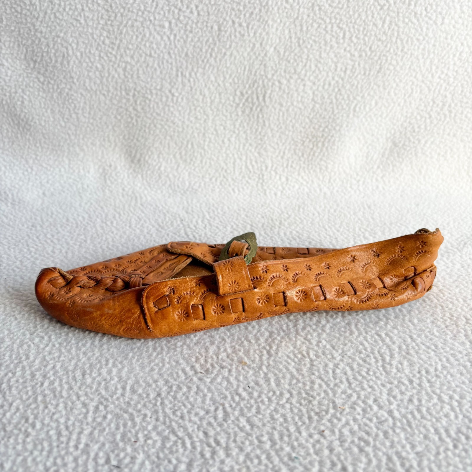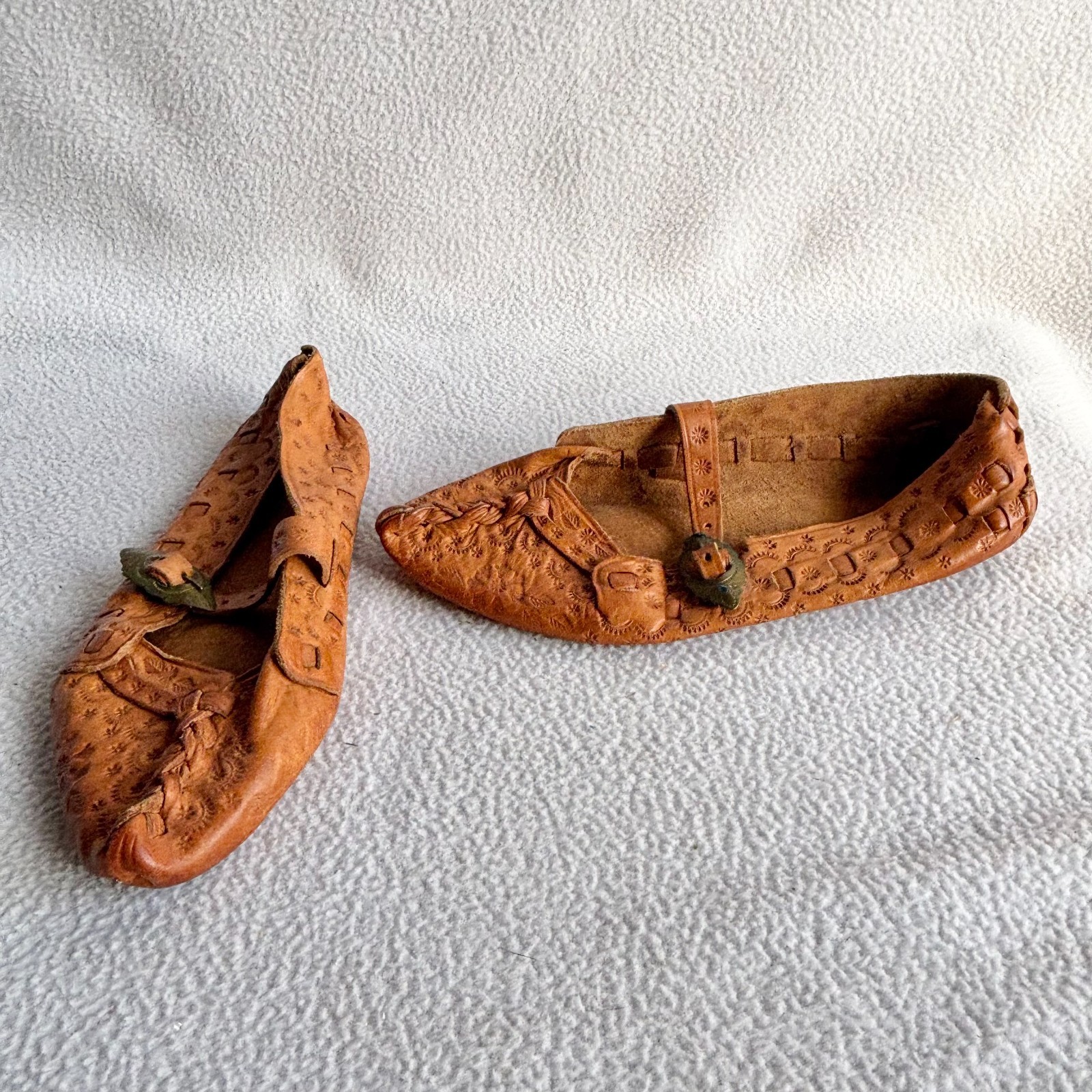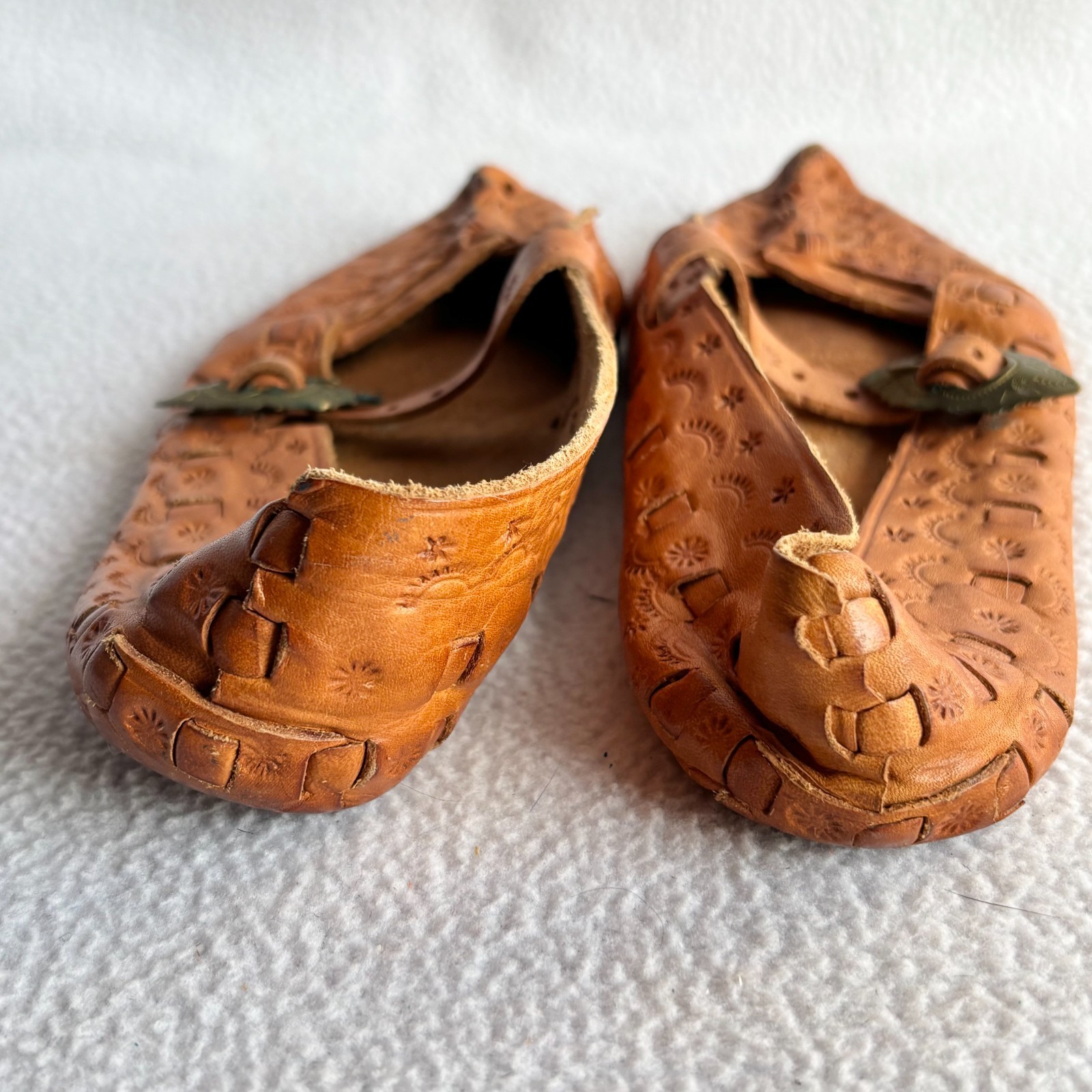 как выглядит Vintage Polish Traditional Kierpce Tooled Leather Folk Shoes Unisex 5-6 фото