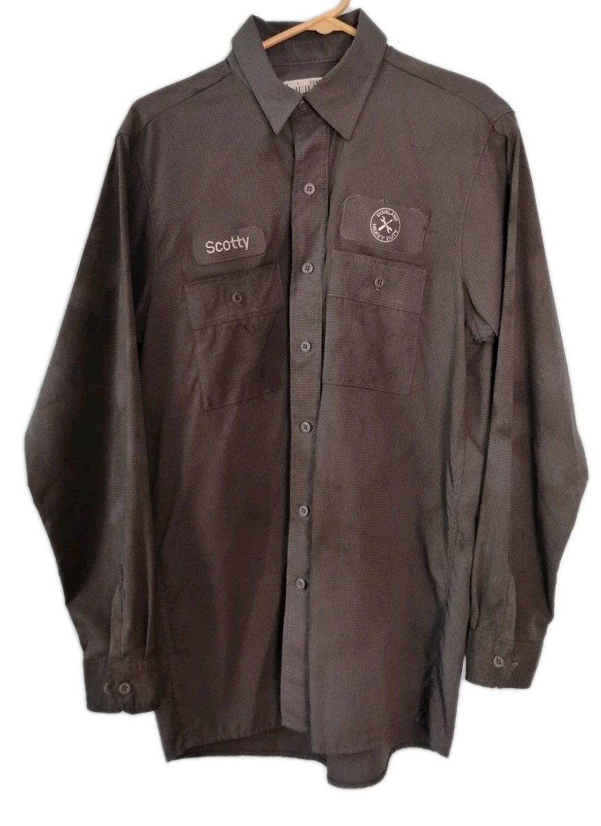 как выглядит Lot Of 3, Medium Long Sleeve Gray,Blue Uniform Work Shirts Button Up Cintas фото
