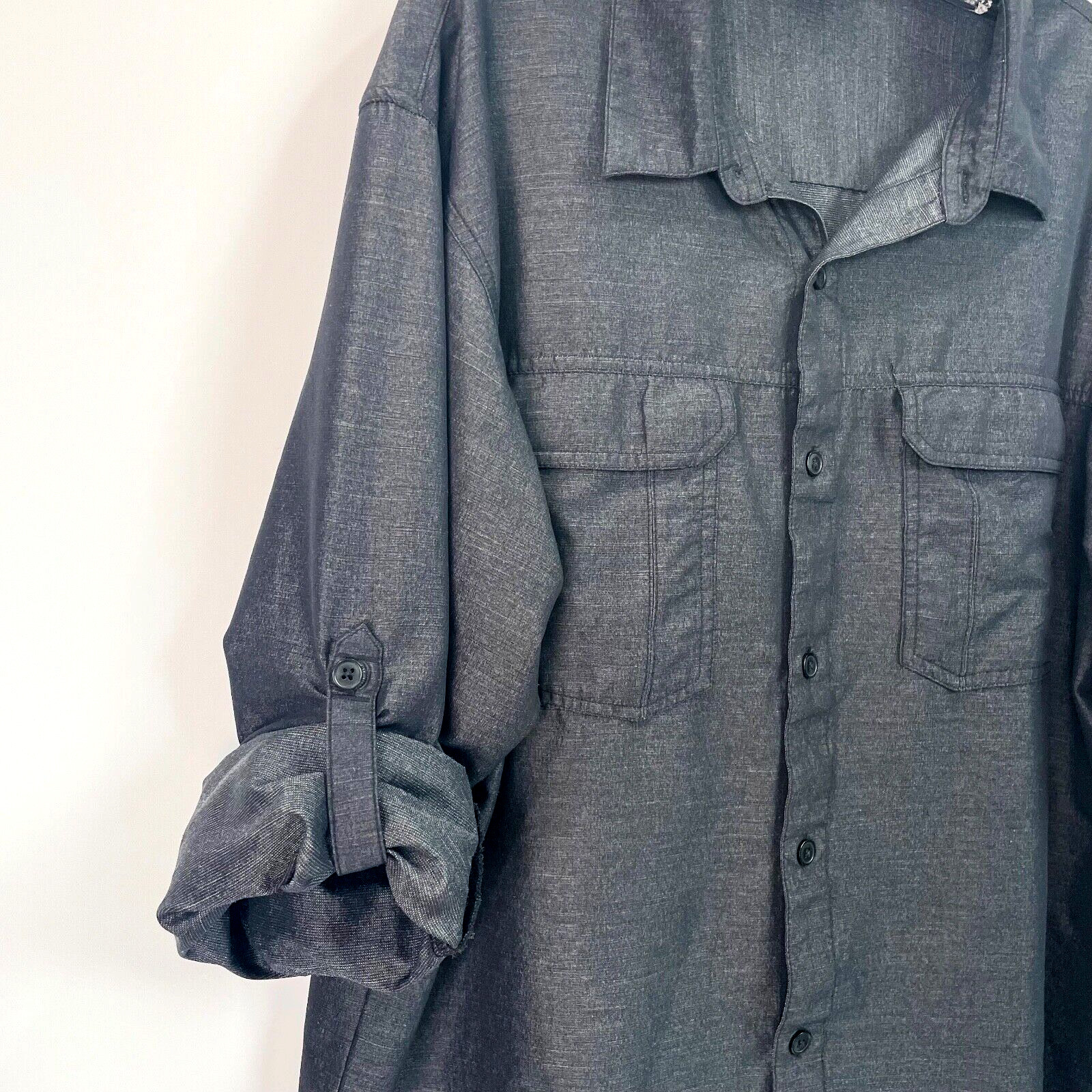 как выглядит Columbia Mens Large Shirt Westerly Winds Black Button Down Convertible Sleeve фото