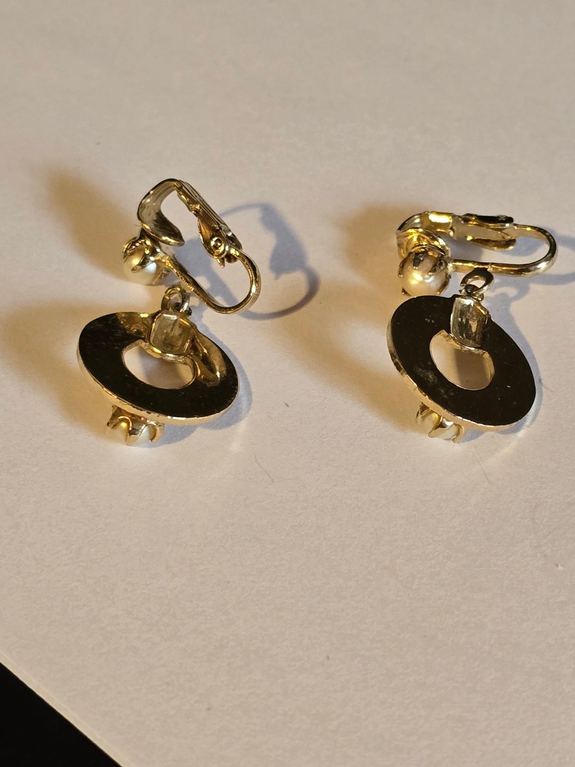как выглядит Kids Gold Tone Faux Pearl Dangle Clip-On Earrings Elegant Non-Pierced фото