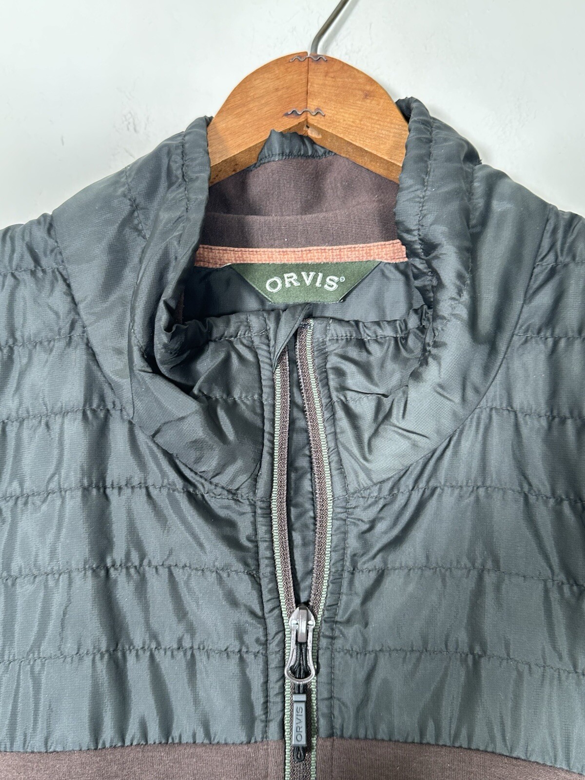как выглядит ORVIS Brown Quilted 1/4 Zip Pullover Sweatshirt W/ Professor Elbow Patches XXL фото