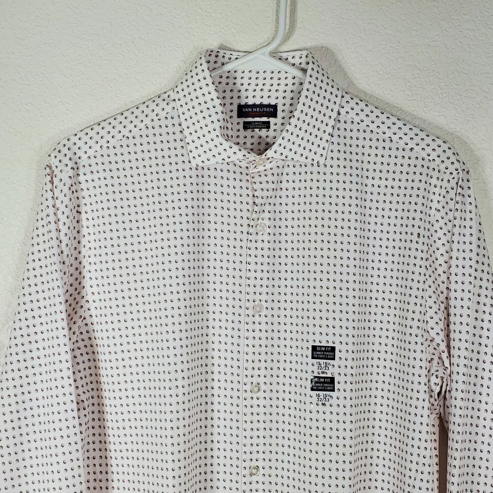 как выглядит Van Heusen Mens Medium Shirt Traveler Slim Fit 4-Way Stretch 15-15.5 32/33 фото