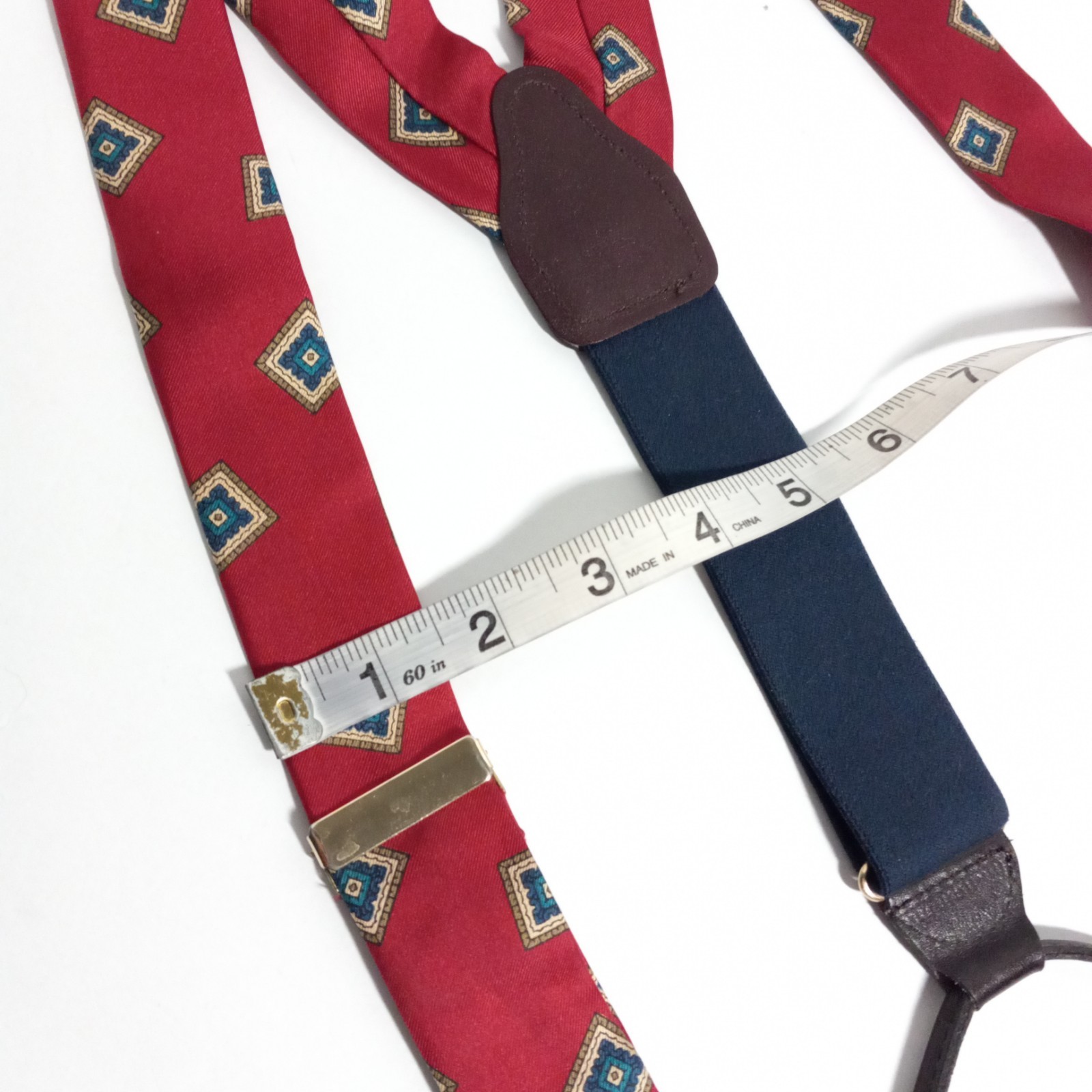 Vintage CAS Suspenders West Germany Red Blue Medallion Leather Button Braces VG