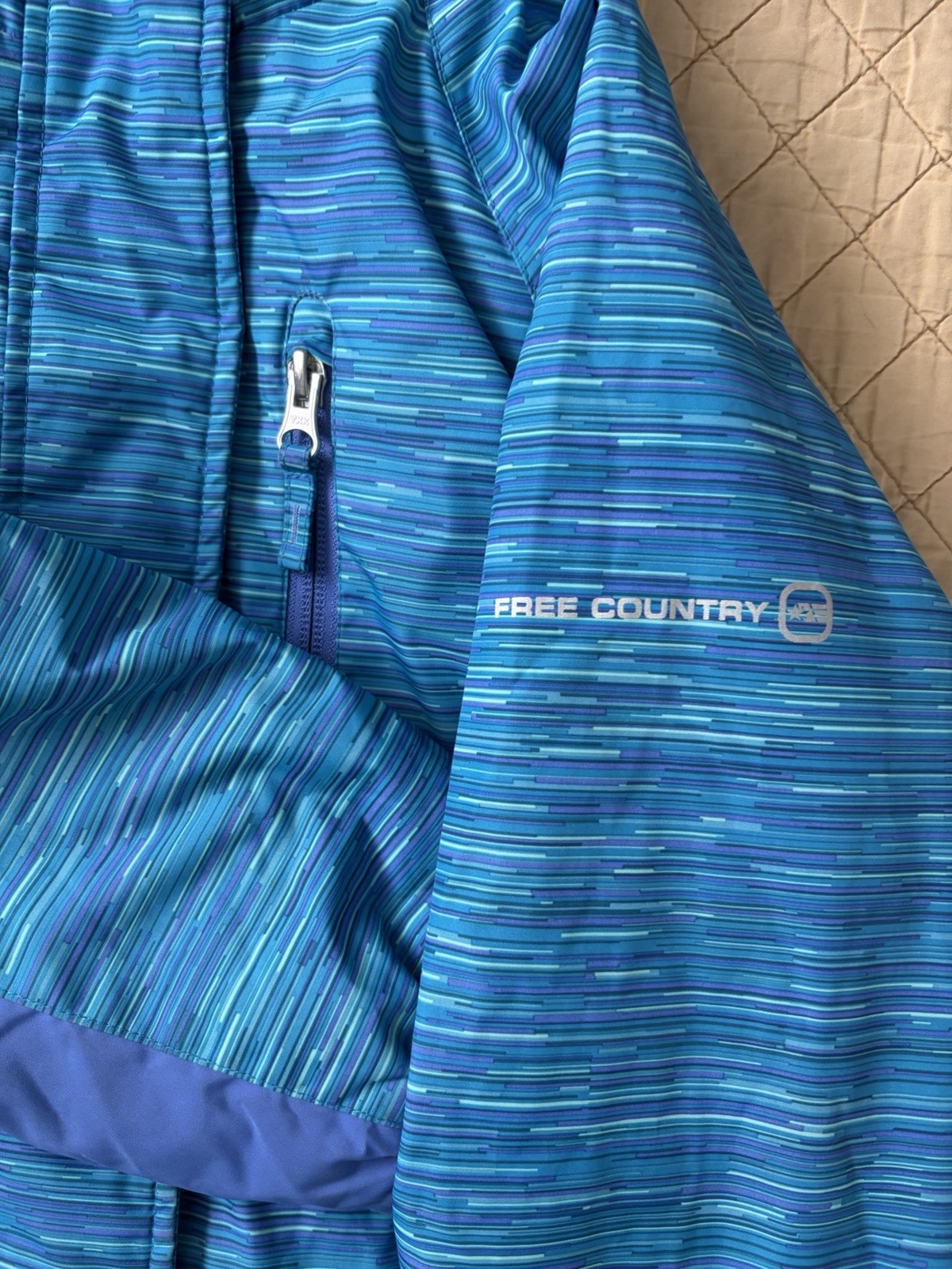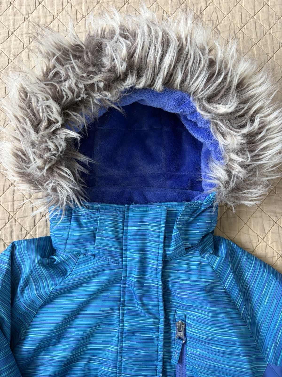 как выглядит Free Country Girls Puffer Jacket Blue Purple S 7/8 Hooded Fur Trim Full Zip фото
