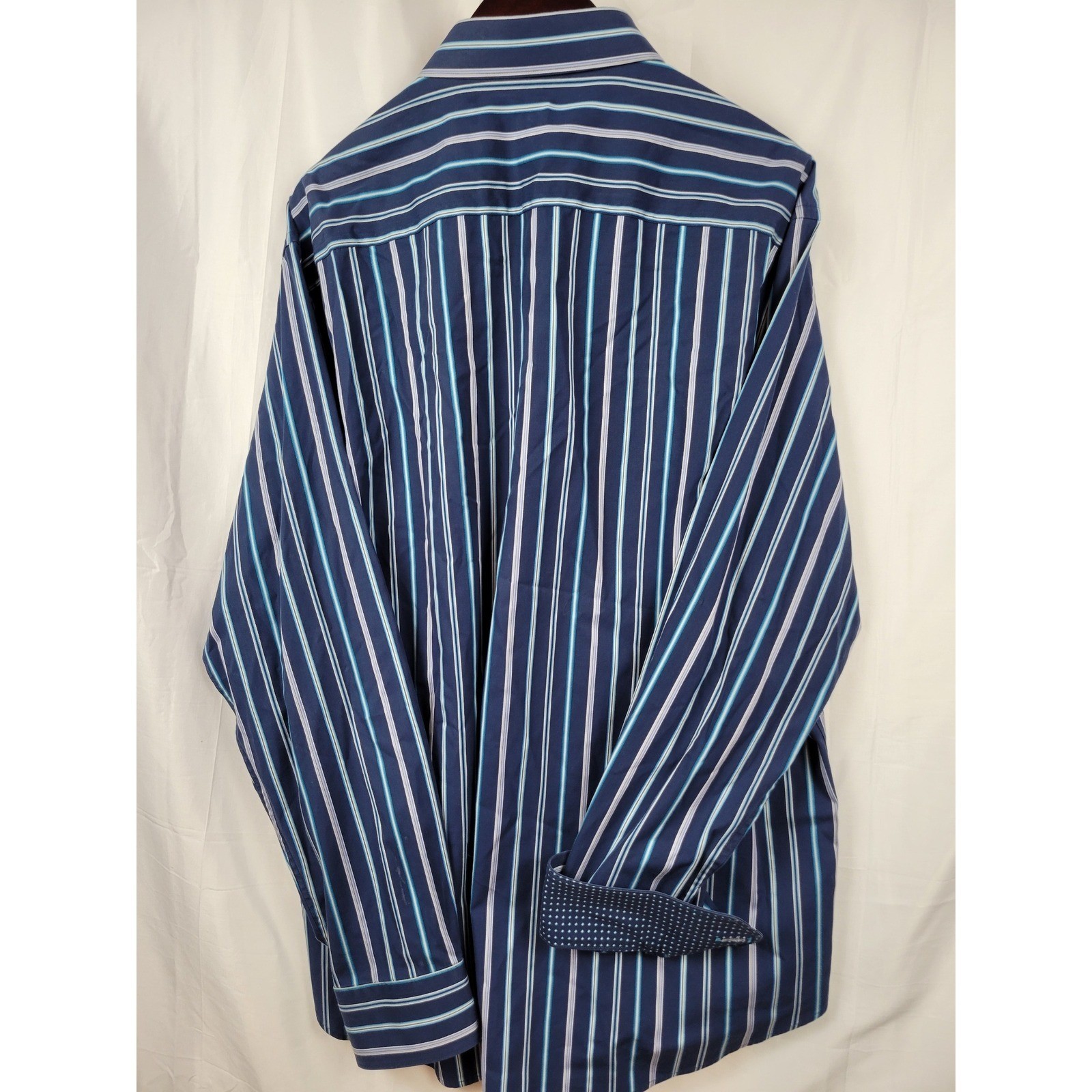 Bugatchi Uomo Shaped Fit Stripe Dress Shirt, Medium, Blue, Cotton
