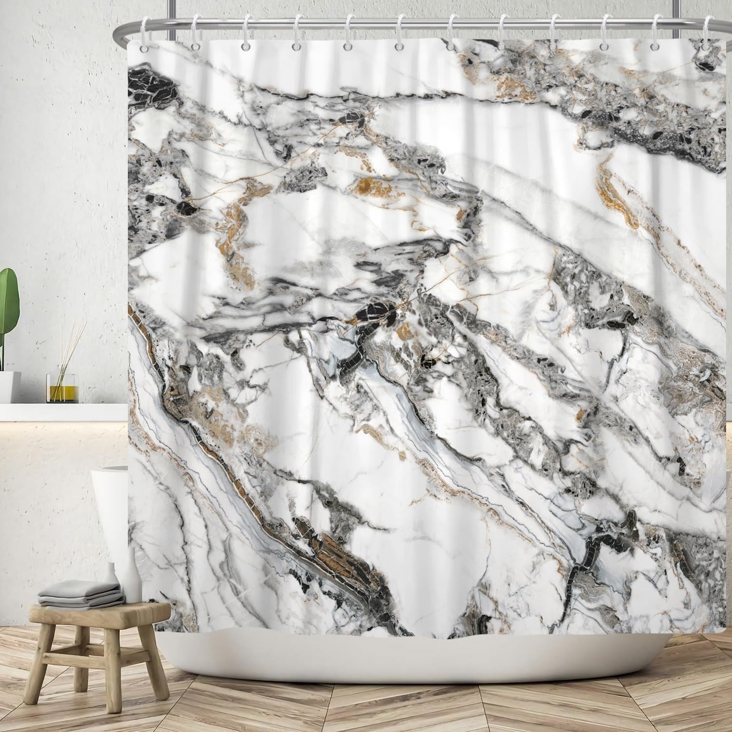 Grey and White Marble Shower Curtain for Bathroom,Abstract Marble Texture Bat...
