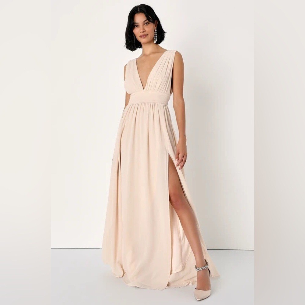 как выглядит Lulus Heavenly Hues Blush Maxi Dress Bridesmaid Wedding Prom Size Small фото