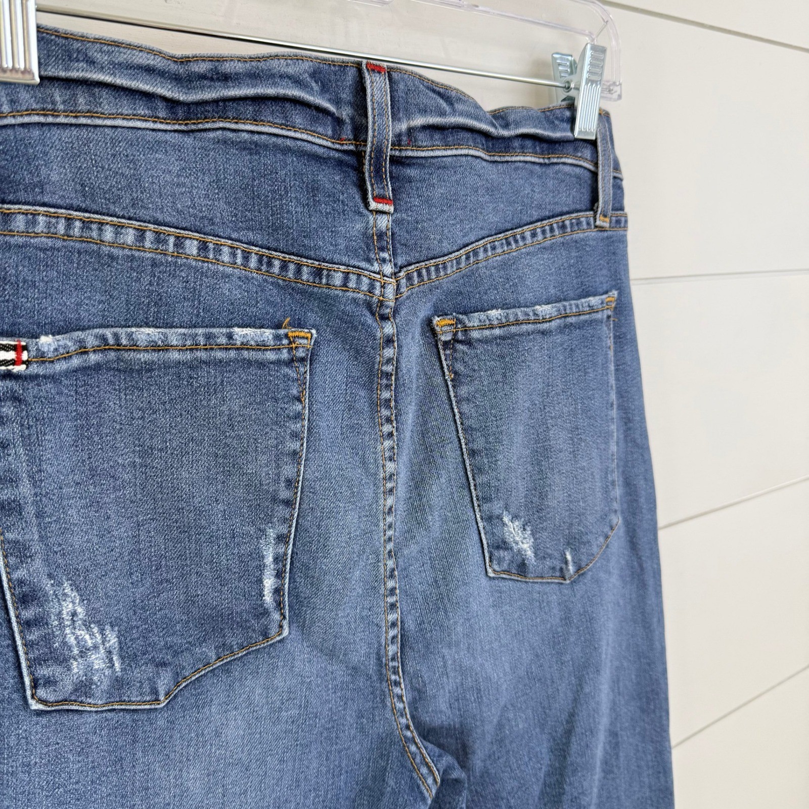 AO.LA Alice Olivia GOOD High Rise EXPOSED BUTTON FLY Jeans LONG SHOT 30 USA