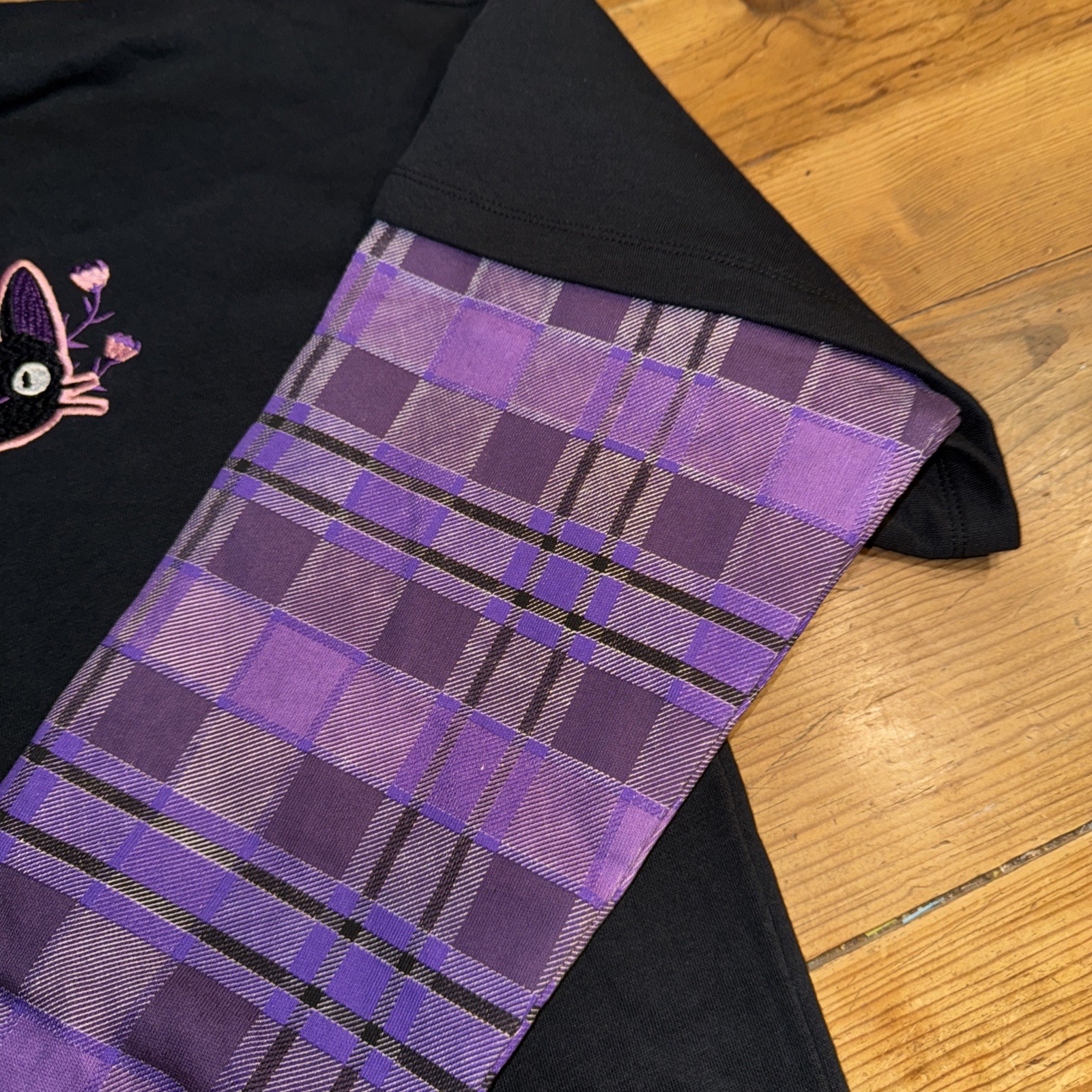 Studio Ghibli Kiki's Delivery Service Jiji Plaid Twofer Hoodie NWOT Plus Size 2