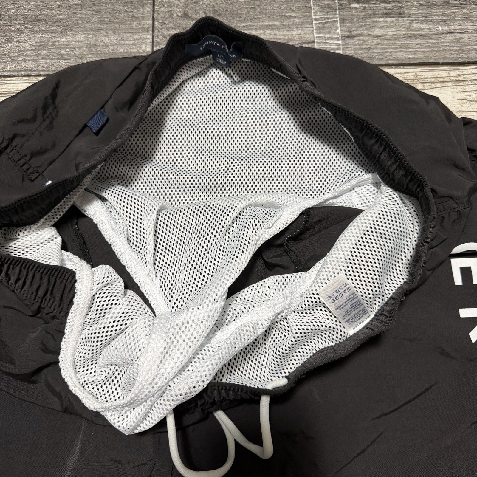 Tommy Hilfiger Mesh Lined Swim Trunks Men s L Black Inseam 7