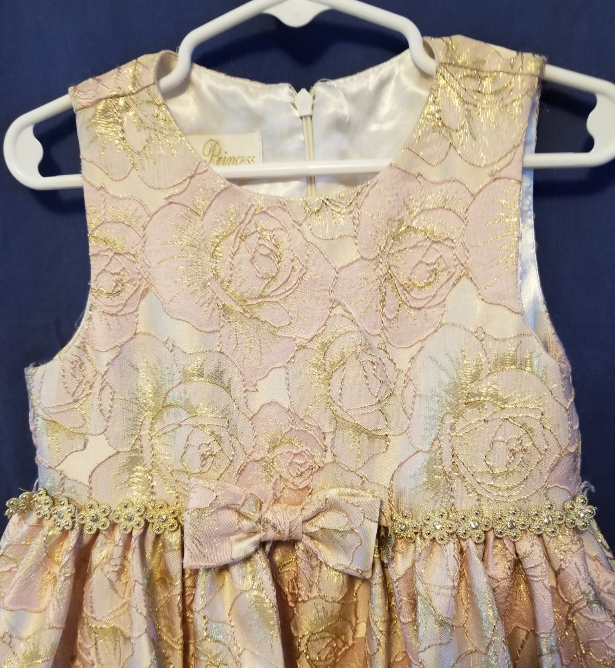 как выглядит American Princess Girl Dress Light Pink w gold brocade sz5 tulle underskirt фото
