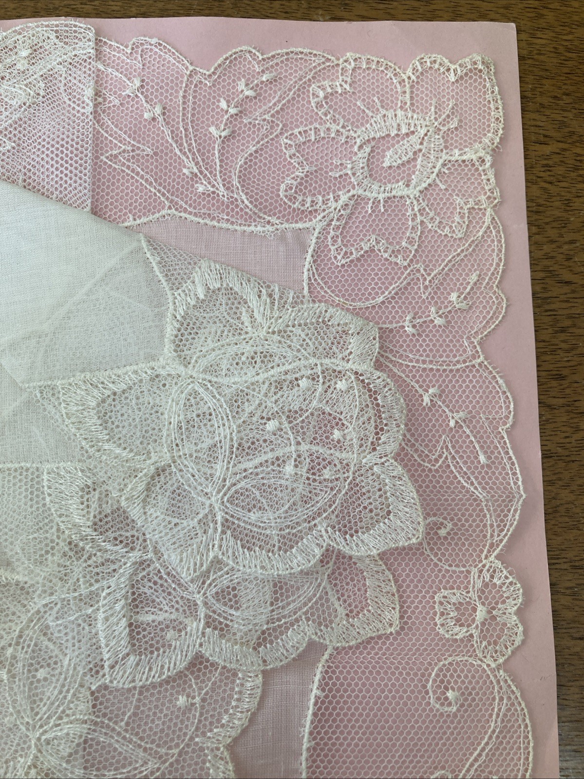 как выглядит 2 Vintage 1960s Berkshire Handkerchiefs NOS Austria Cotton Lace Bridal Wedding фото