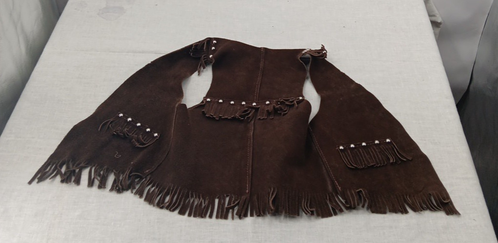 • VTG Handmade Childs Leather Vest Vintage Western Cowboy Studs Fringe size 10
