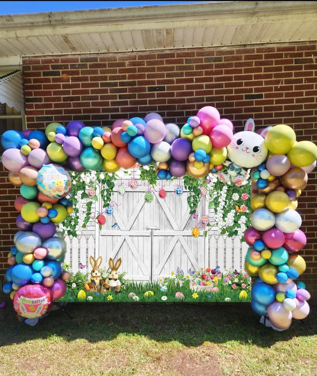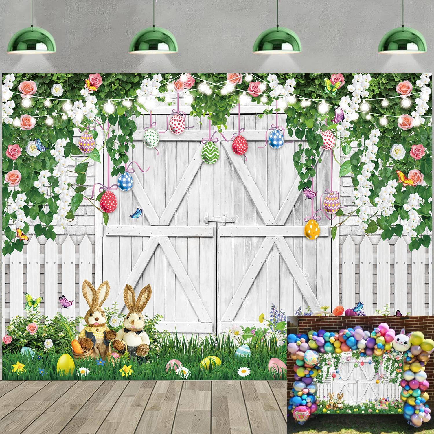 как выглядит Easter Backdrop for Photography 7X5Ft Spring Green Grass Flowers Easter Eggs Rab фото