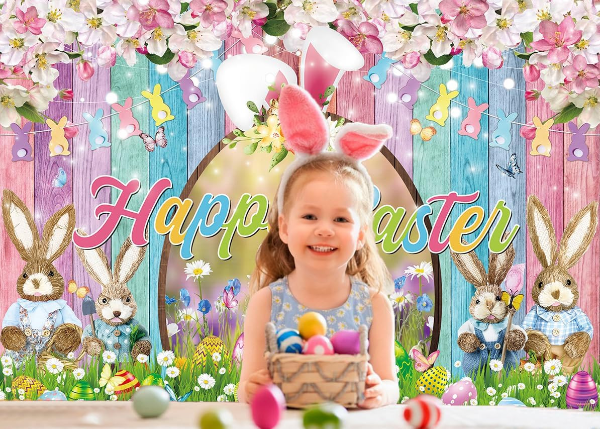 как выглядит Happy Easter Backdrop Colorful Wood Easter Photography Background Spring Flower фото