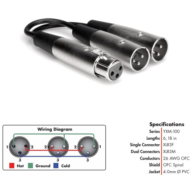 Hosa XLR3F to Dual XLR3M, 1.5 ft. YXM-101.5
