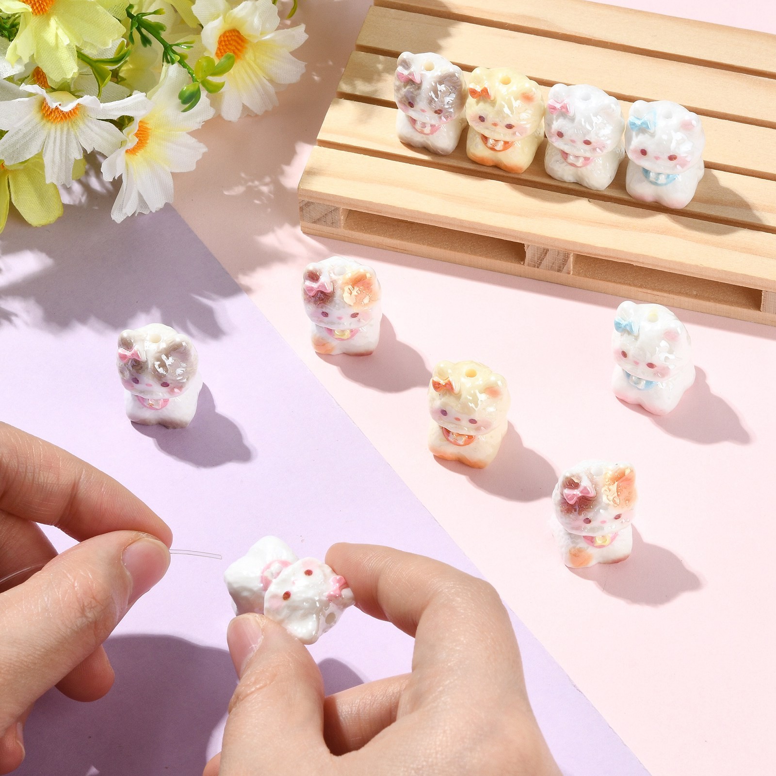 как выглядит 10pcs 3D Cute Cat Electroplate Opaque Resin Beads Cat Beads for DIY фото