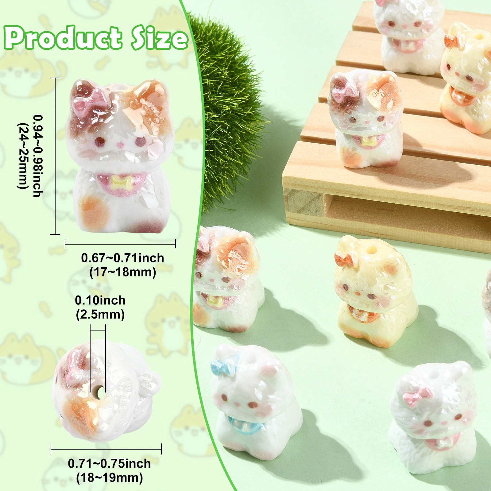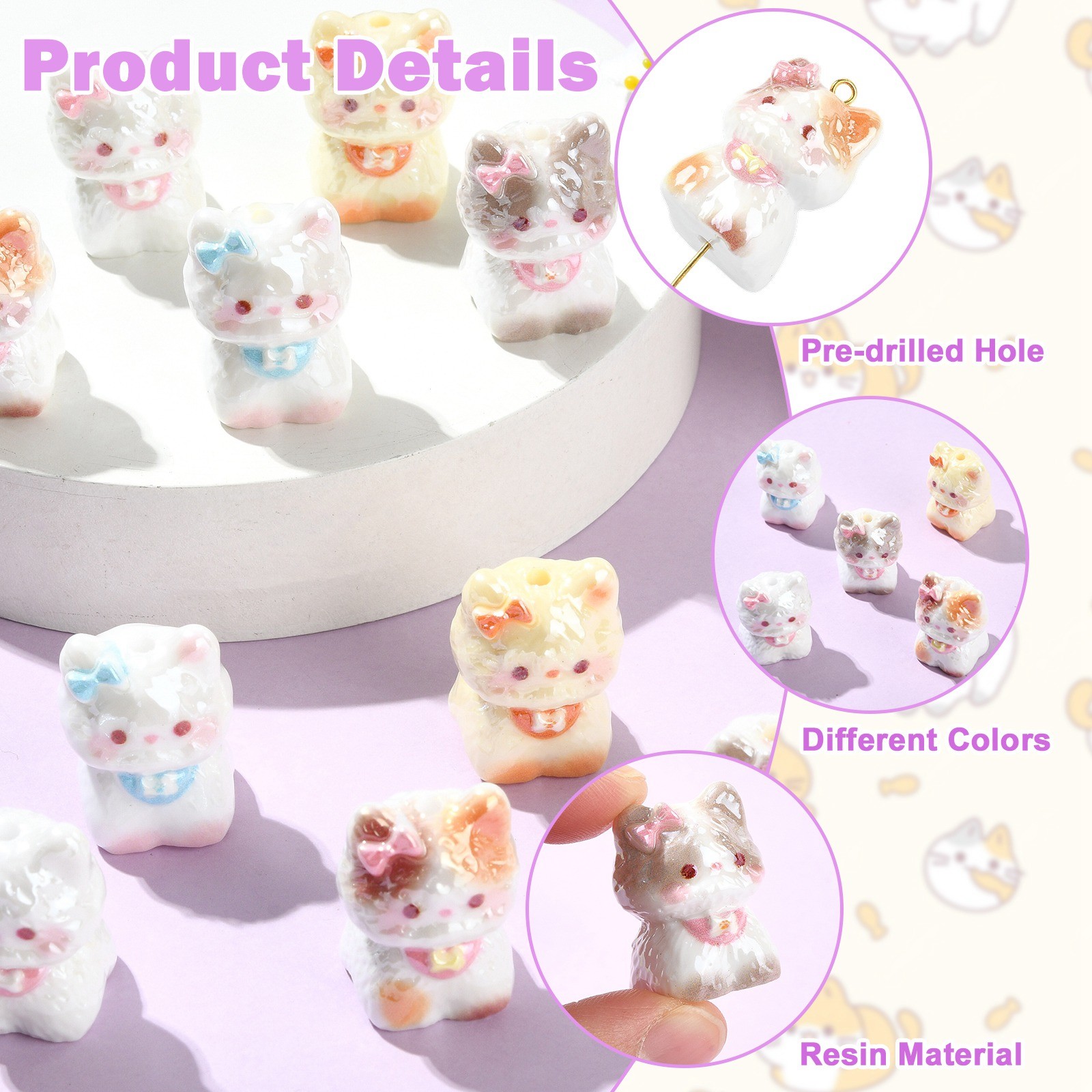 10pcs 3D Cute Cat Electroplate Opaque Resin Beads Cat Beads for DIY