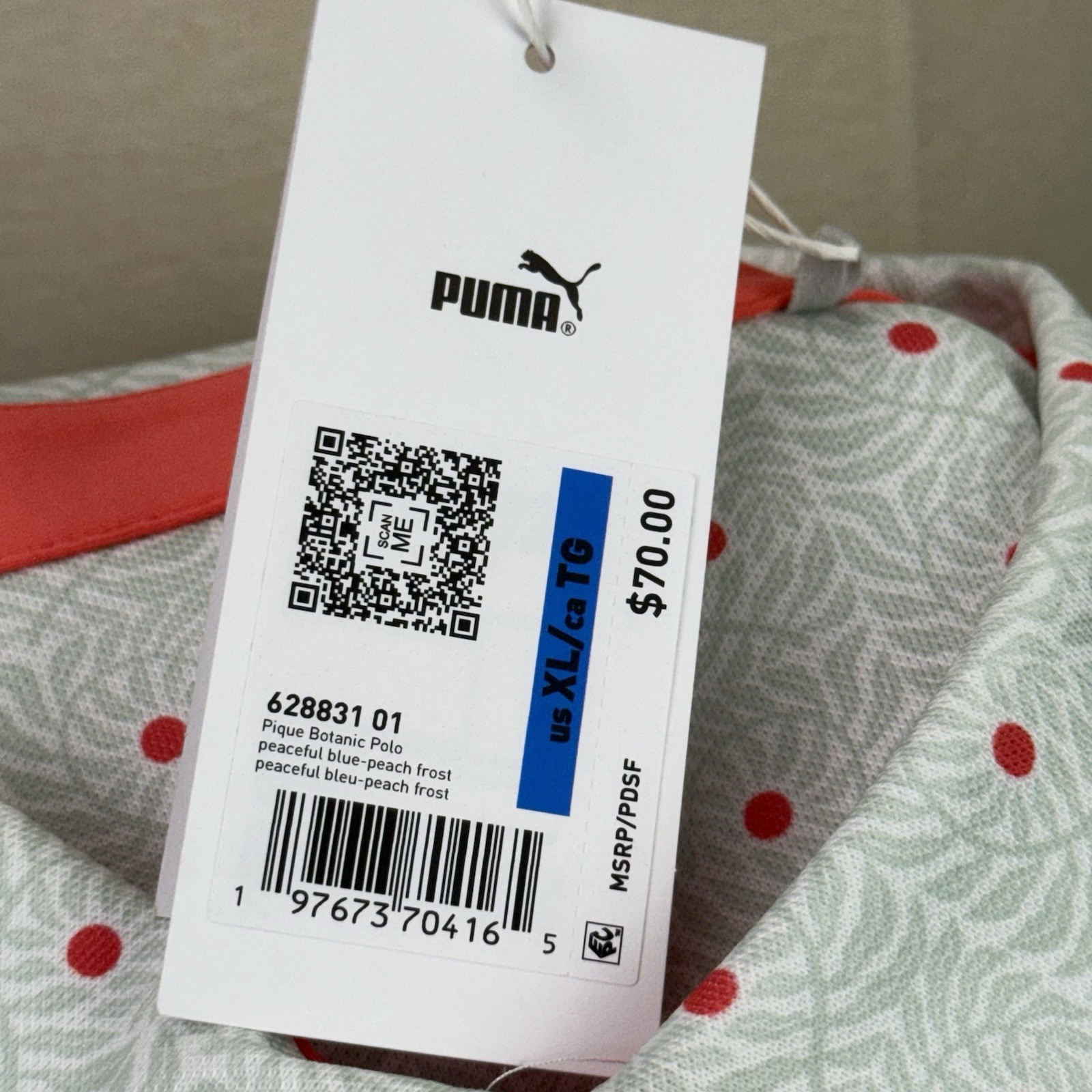 Puma Pique Botanic Polo Shirt Men's Size XL Peaceful Blue/Green Peach Frost