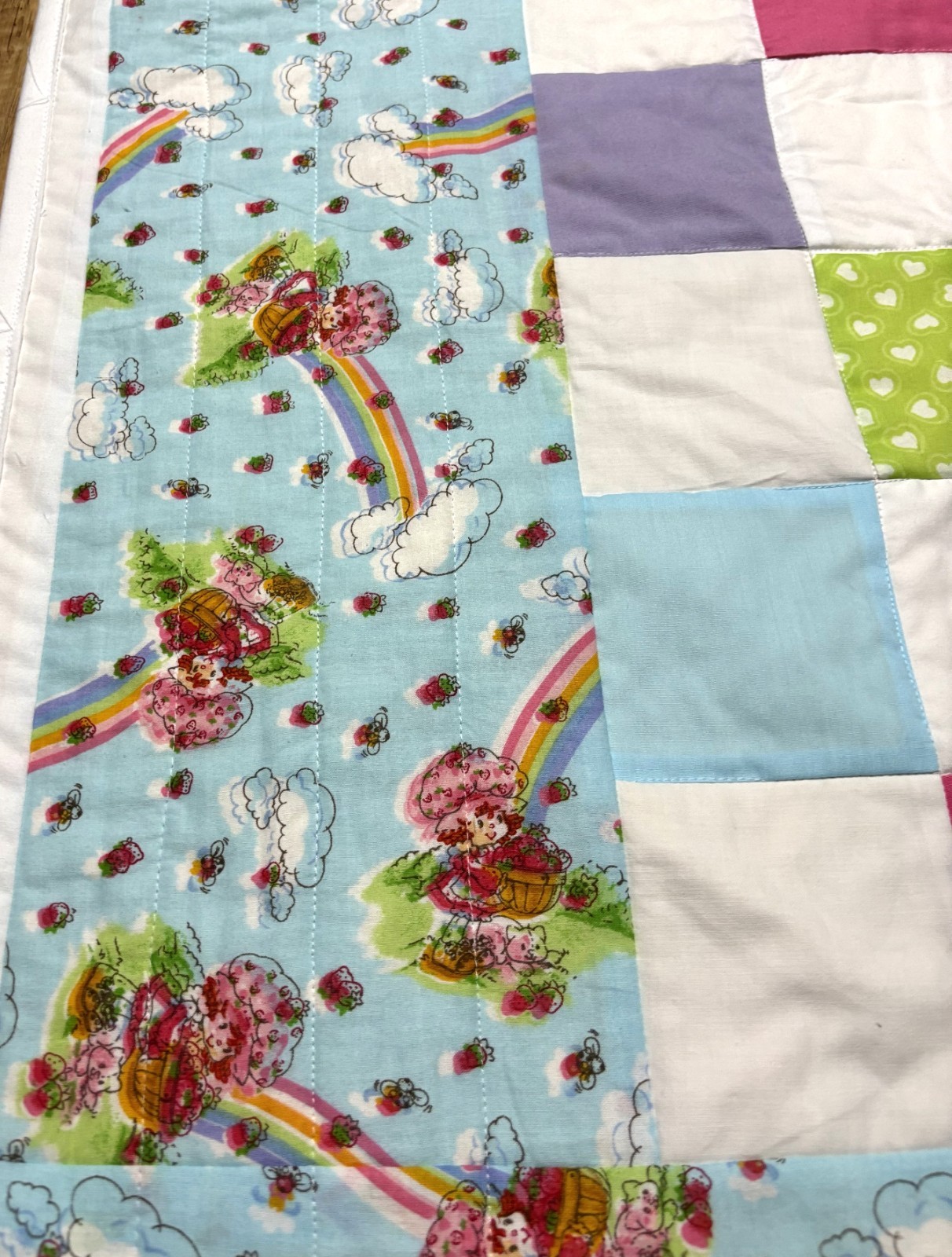 Baby Quilt Handmade Girl's Strawberry Shortcake Blanket with Pink Backing New