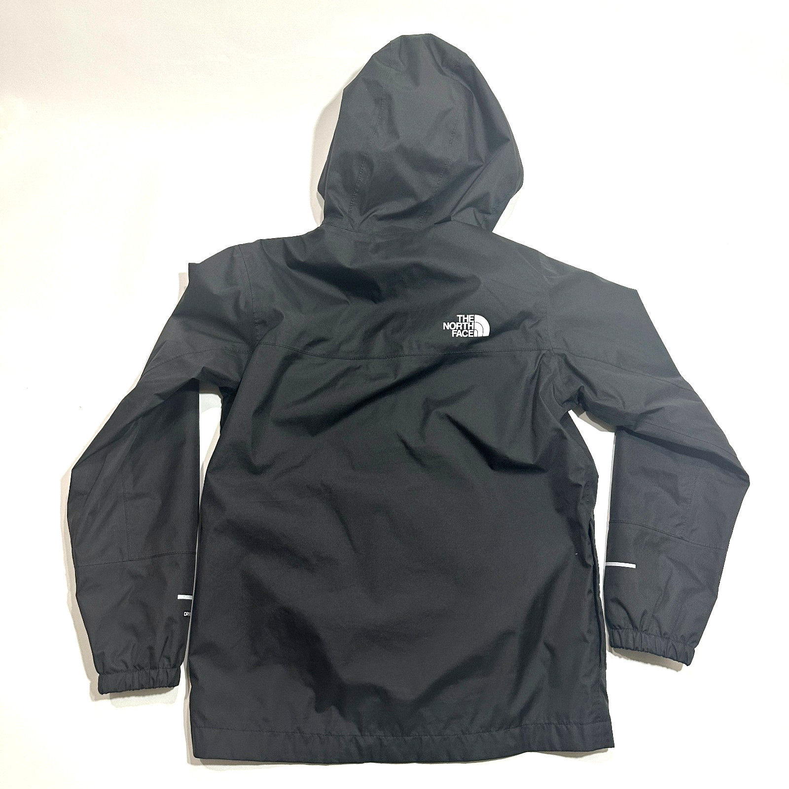как выглядит The North Face Boys Medium 10/12 Black Hooded Rain Jacket Windbreaker Lightweigh фото