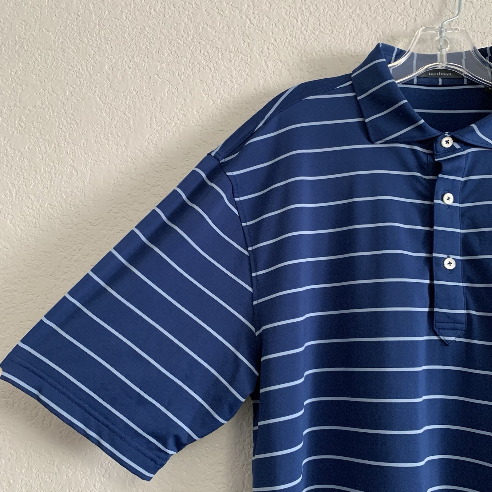 Turtleson Golf Shirt Polo Mens L Performance Striped Short Sleeve Blue Preppy