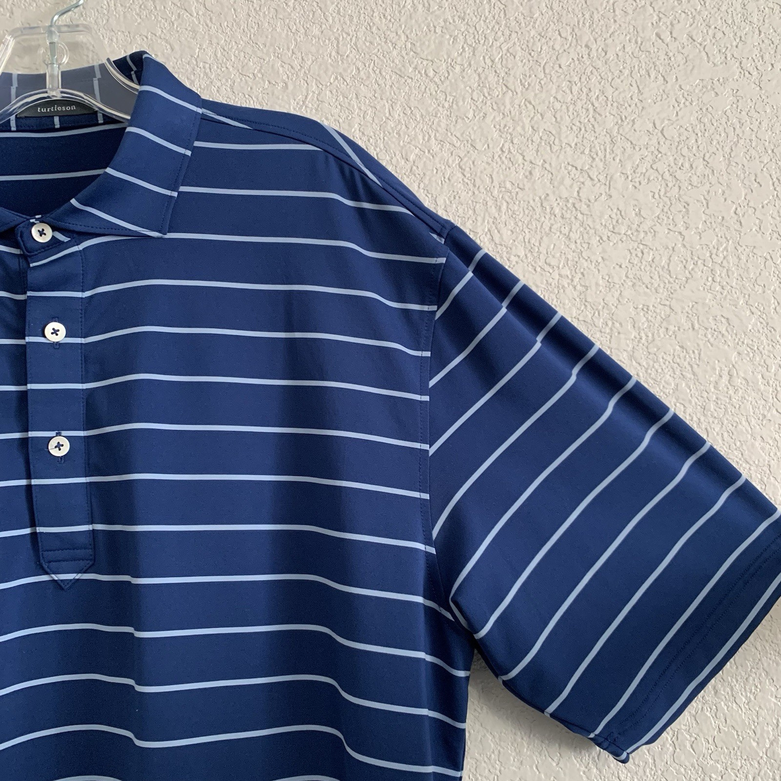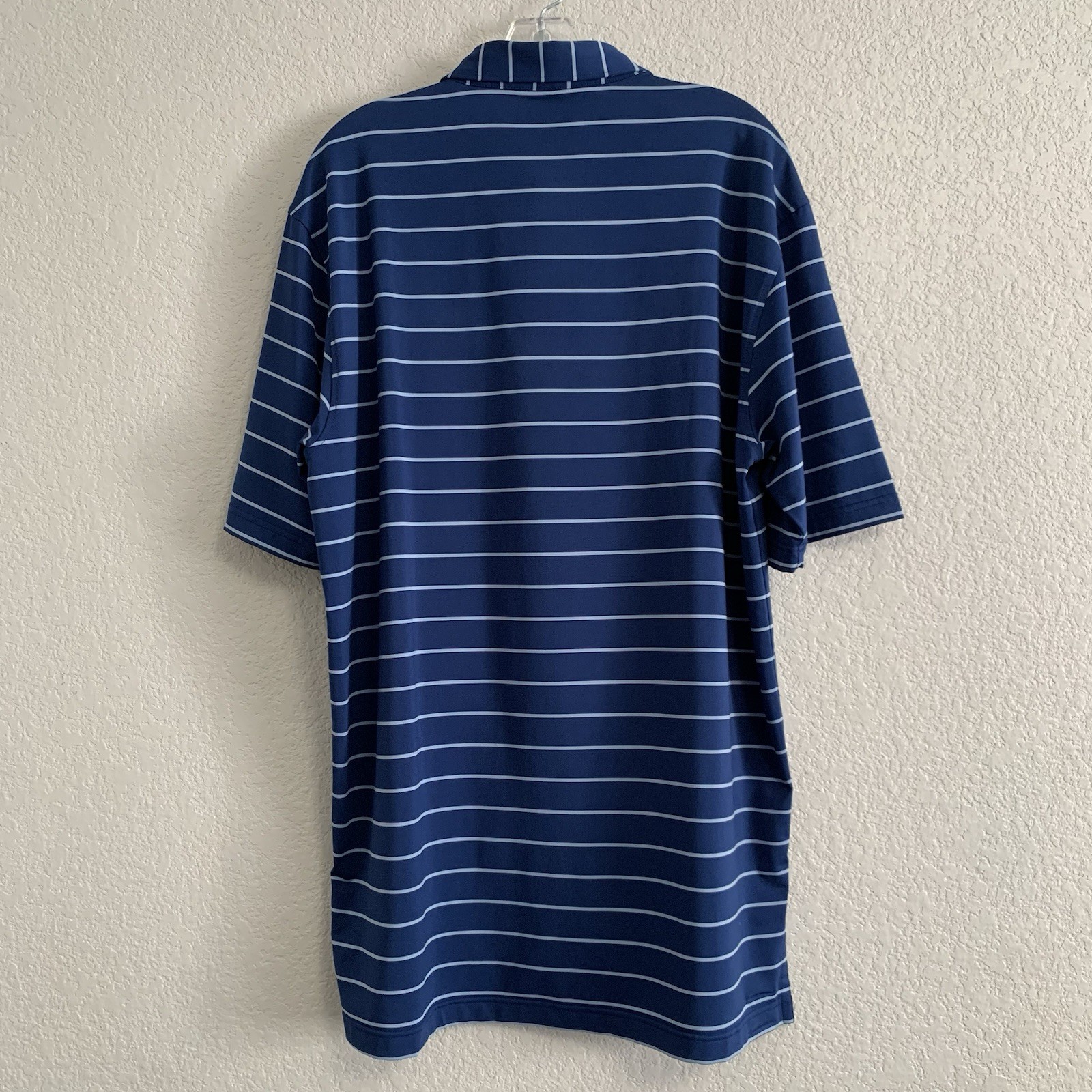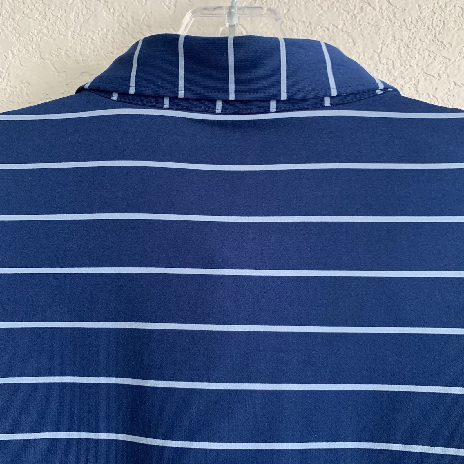 как выглядит Turtleson Golf Shirt Polo Mens L Performance Striped Short Sleeve Blue Preppy фото