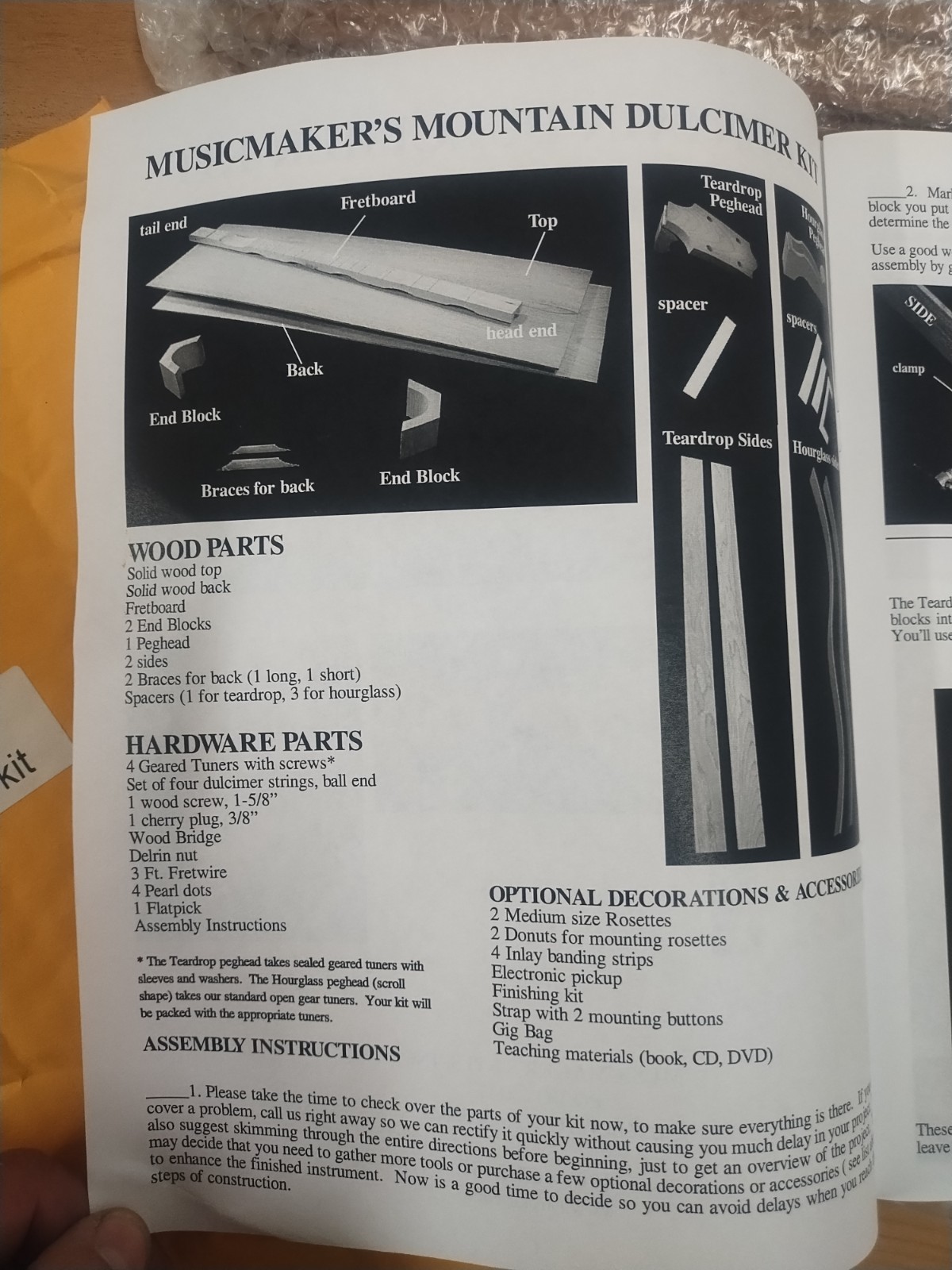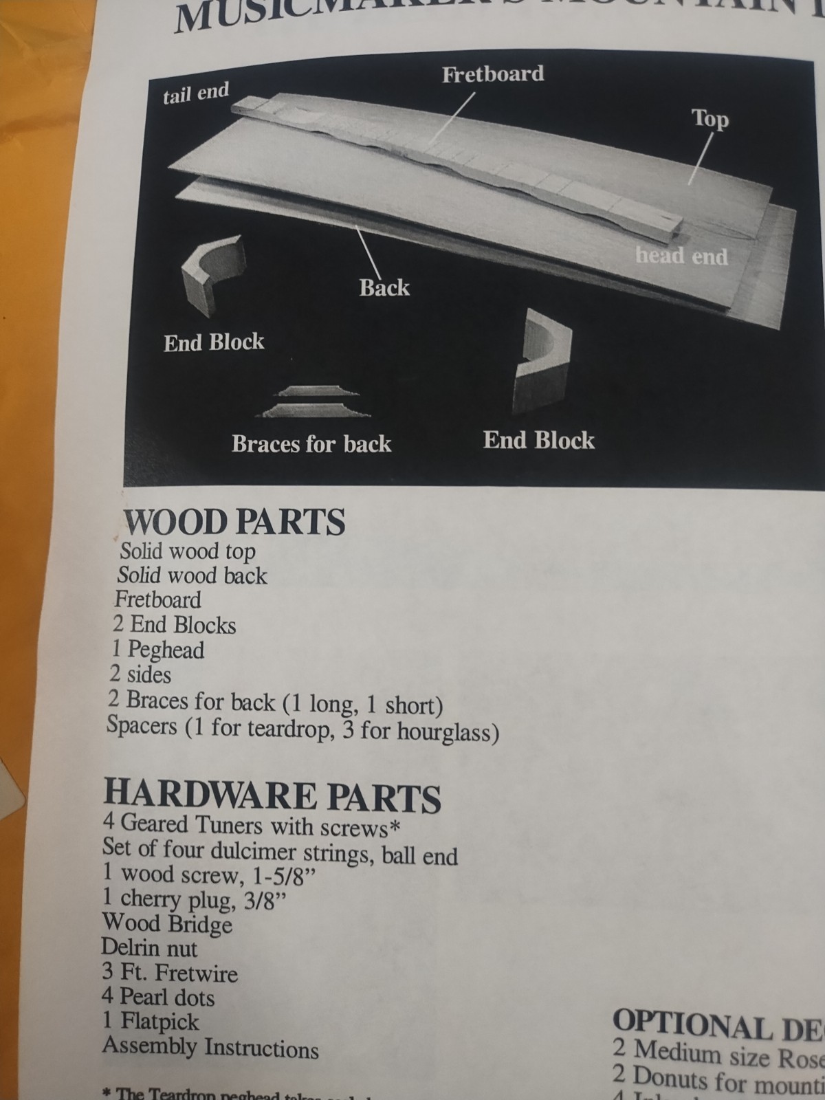 Mountain Dulcimer Kit Teardrop Model Unfinished DIY Build Your Own. Musicmaker's