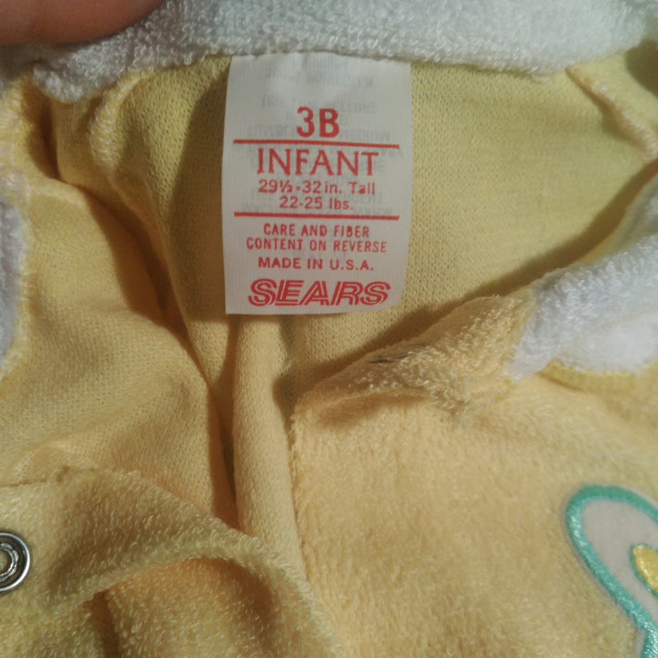 Vintage Footed Sleeper Yellow Unisex Pajama One Piece Size 3B infant SEARS