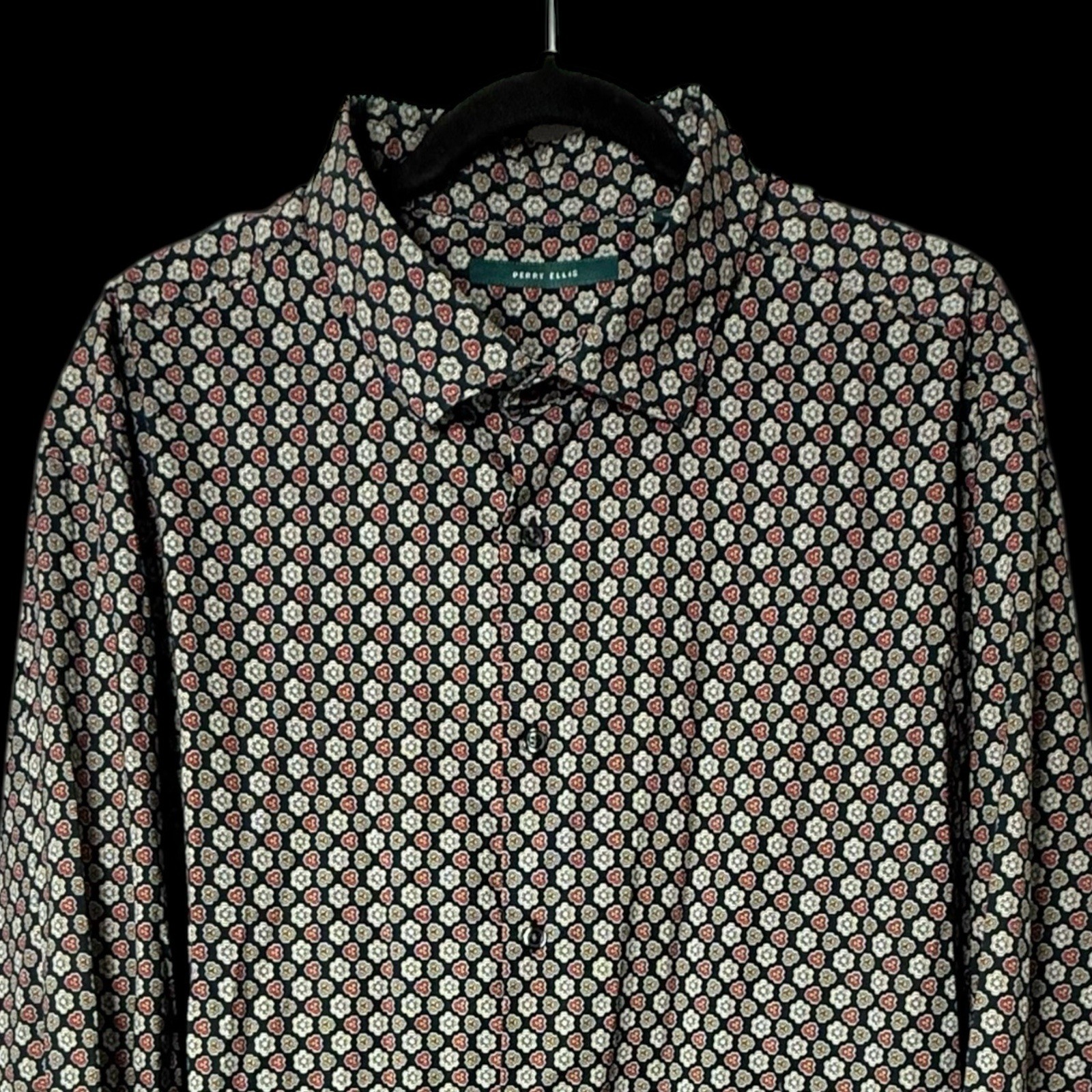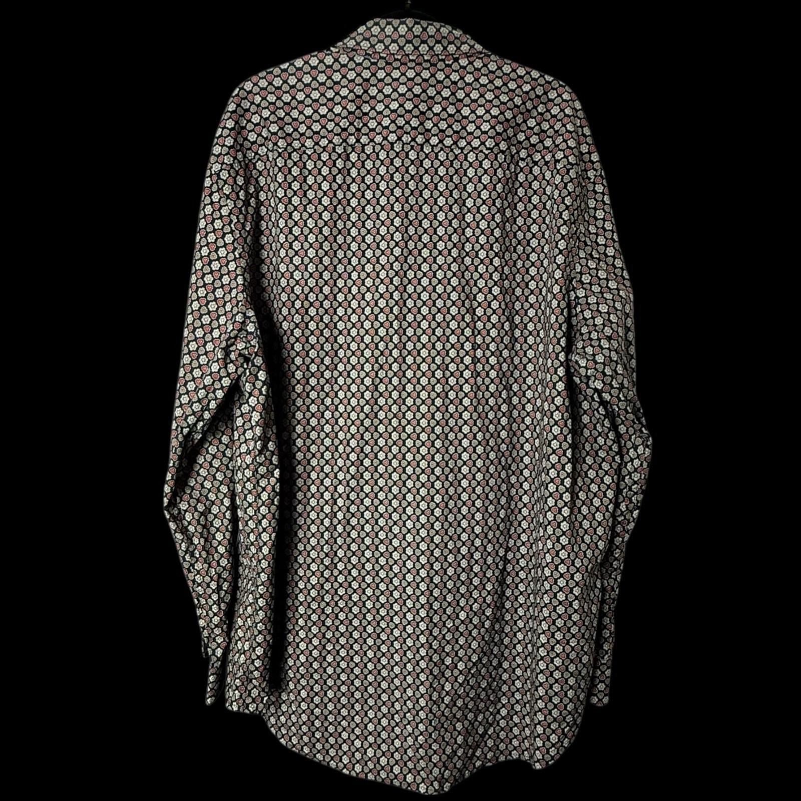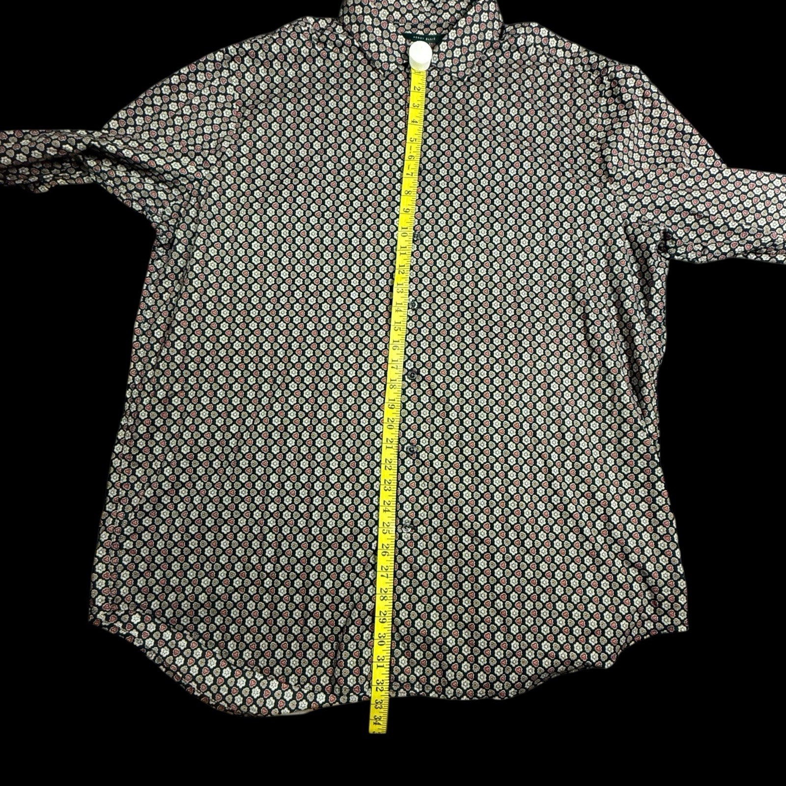 как выглядит Perry Ellis Floral Red Gold 2XLT 100 Cotton Button Up Long Sleeve фото