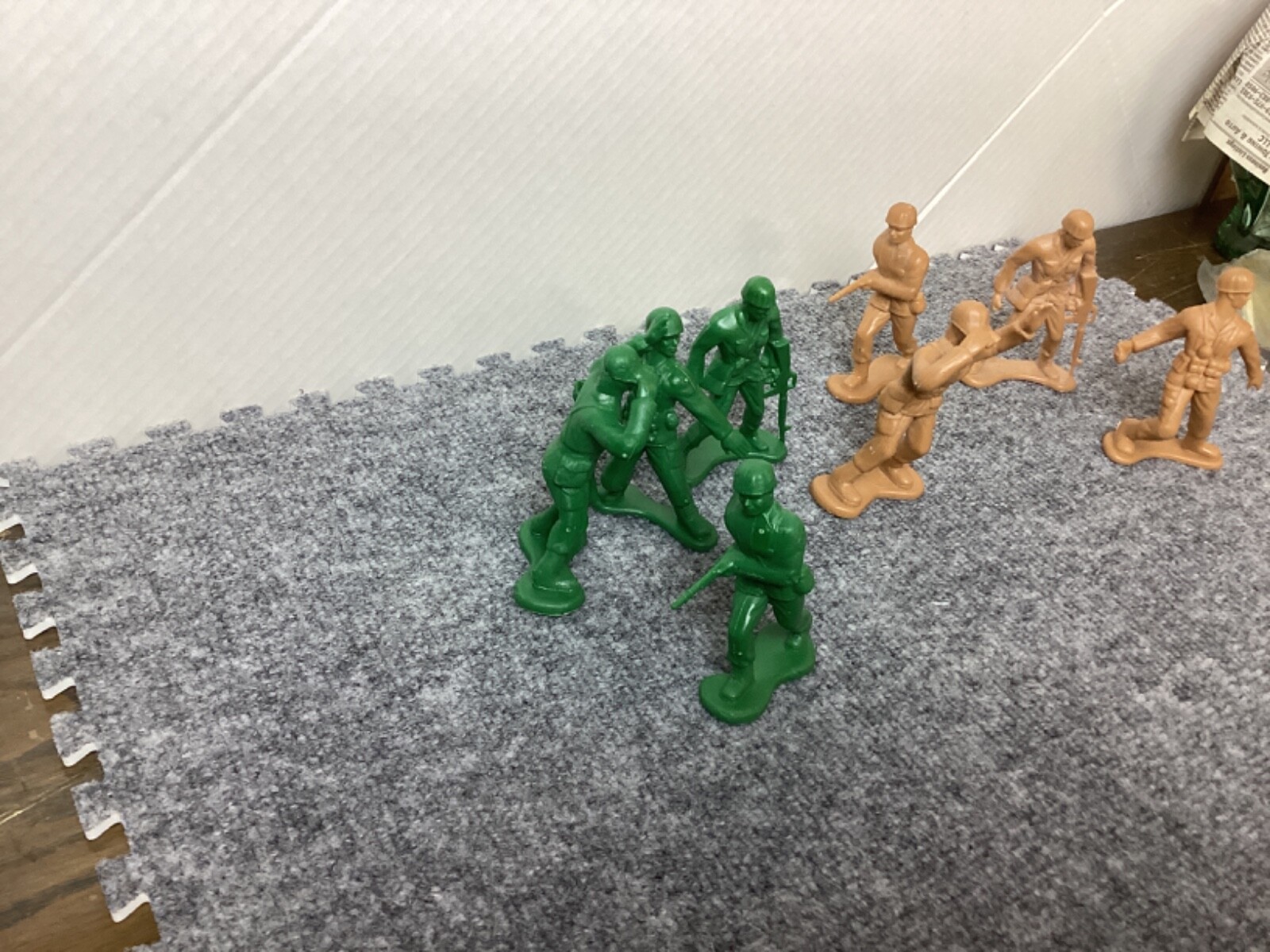 как выглядит Greenbrier International Army Men Green Tan 8 Large Toy Soldiers Vintage фото
